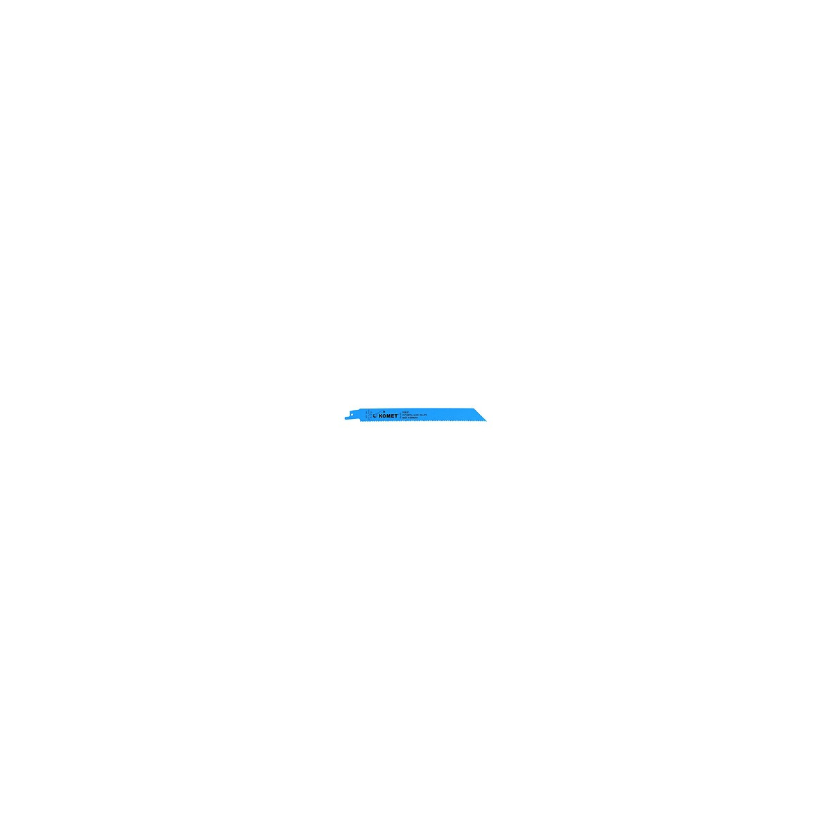 Contenu de la livraison: - 5x Komet PALLETS 200mm Lames de scie sabre 8-12tpi HSS-Bi-Metal Vario (501.340) Description du produit: La lame de scie Komet est une lame robuste qui convient au traitement du métal, du bois et des palettes. La lame de scie de haute qualité est en métal trempé (BI-métal) et est donc conçue pour des charges extrêmes. La géométrie des dents, l'épaisseur de 1,27 mm et la longueur de 150 mm permettent d'excellentes coupes affleurantes à travers le matériau. Chaque pointe de dent est en acier HSS trempé et est donc extrêmement résistante et extrêmement puissante. La forme Vario Tooth réduit les vibrations et permet des coupes lisses à travers le matériau. Le pas de dent de 2,1 / 3,2 mm permet même de couper des ongles mous. La qualité exceptionnelle des lames de scie Komet produites en Allemagne est strictement contrôlée. Spécifications techniques: Matériau : métal HSS BI Longueur : 200 mm Épaisseur : 1,27 mm Largeur : 19 mm Dents par pouce : 8-12 Disposition des dents: réglage de groupe