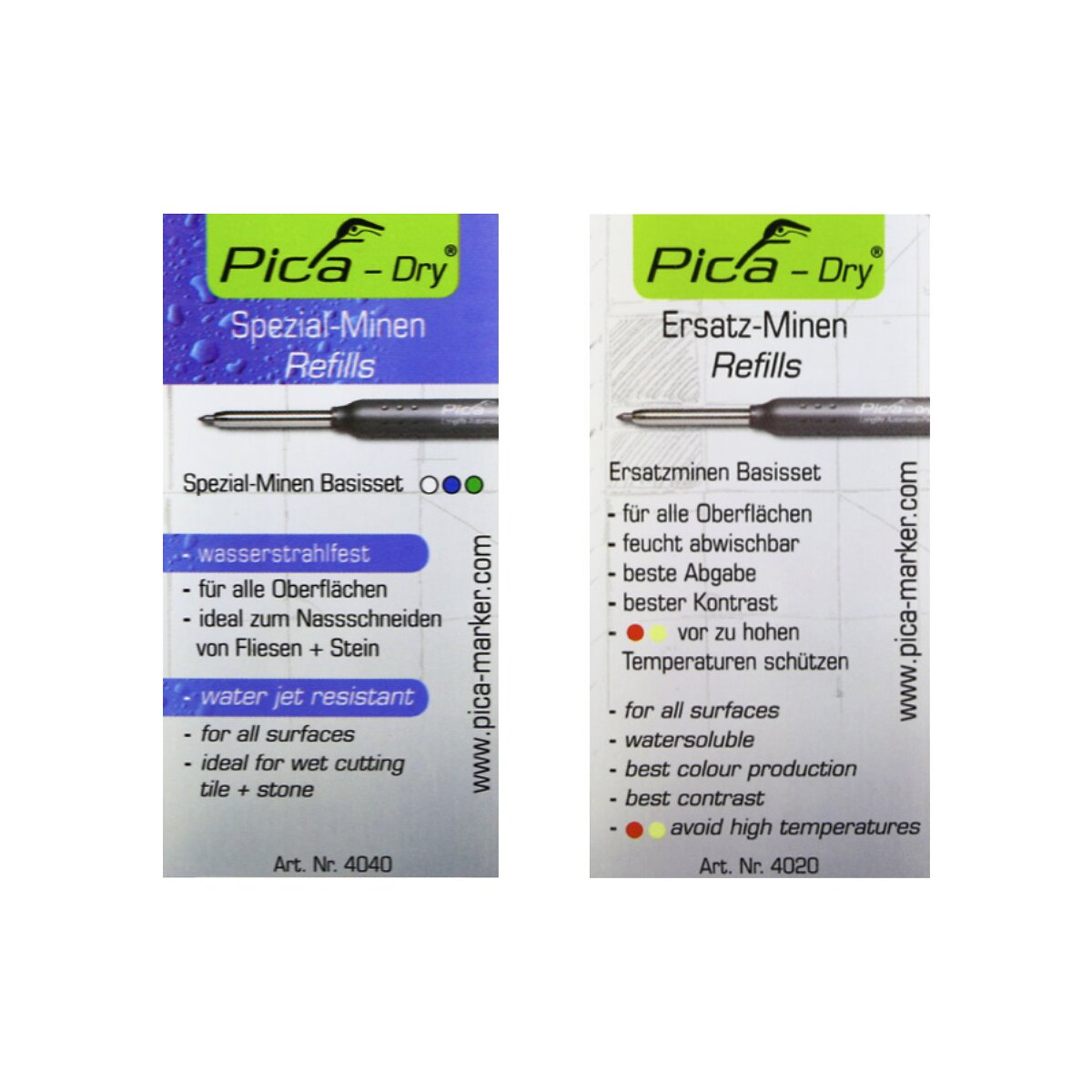Contenu du paquet: - 4x Pica DRY Mines de remplacement noir hydrosoluble à plusieurs utilisations - 2x Mines de remplacement rouge Pica DRY hydrosoluble à plusieurs utilisations - 2x Mines de remplacement jaune Pica DRY hydrosoluble à plusieurs utilisations - 2x Mines speciales Blanches Pica DRY - 3x Mines speciales Bleues Pica DRY - 3x Mines speciales Vertes Pica DRY - 2x Boîte en plastique pratique Description du produit: Le marqueur de chantier Pica DRY est muni d'une mine graphite universelle FOR ALL 2B qui lui permet de faire des marquages sur presque tous les types de surfaces, sèches ou humides, lisses ou rugueuses, poussiéreuses ou huileuses. Le marqueur Dry pratique dispose d'un design compact et léger et il peut être facilement attaché à votre poche avant ou votre poche latérale à l'aide du clip spécial. Le mécanisme bouton-poussoir unique et de haute technologie rend la charge de la mine automatique avec juste une simple pression sur le bouton. Grâce au bouchon qui protège contre la poussière et l'humidité, le marqueur bénéficie d'une capacité de marquage extrêmement longue. Il existe un taille-mine à l'avant du bouchon pour tailler les mines selon une échelle de marquage graduée en millimètres pour une précision optimale. Spécifications techniques: longueur: 125 mm diamètre: 2,8 mm Poids: 30 g