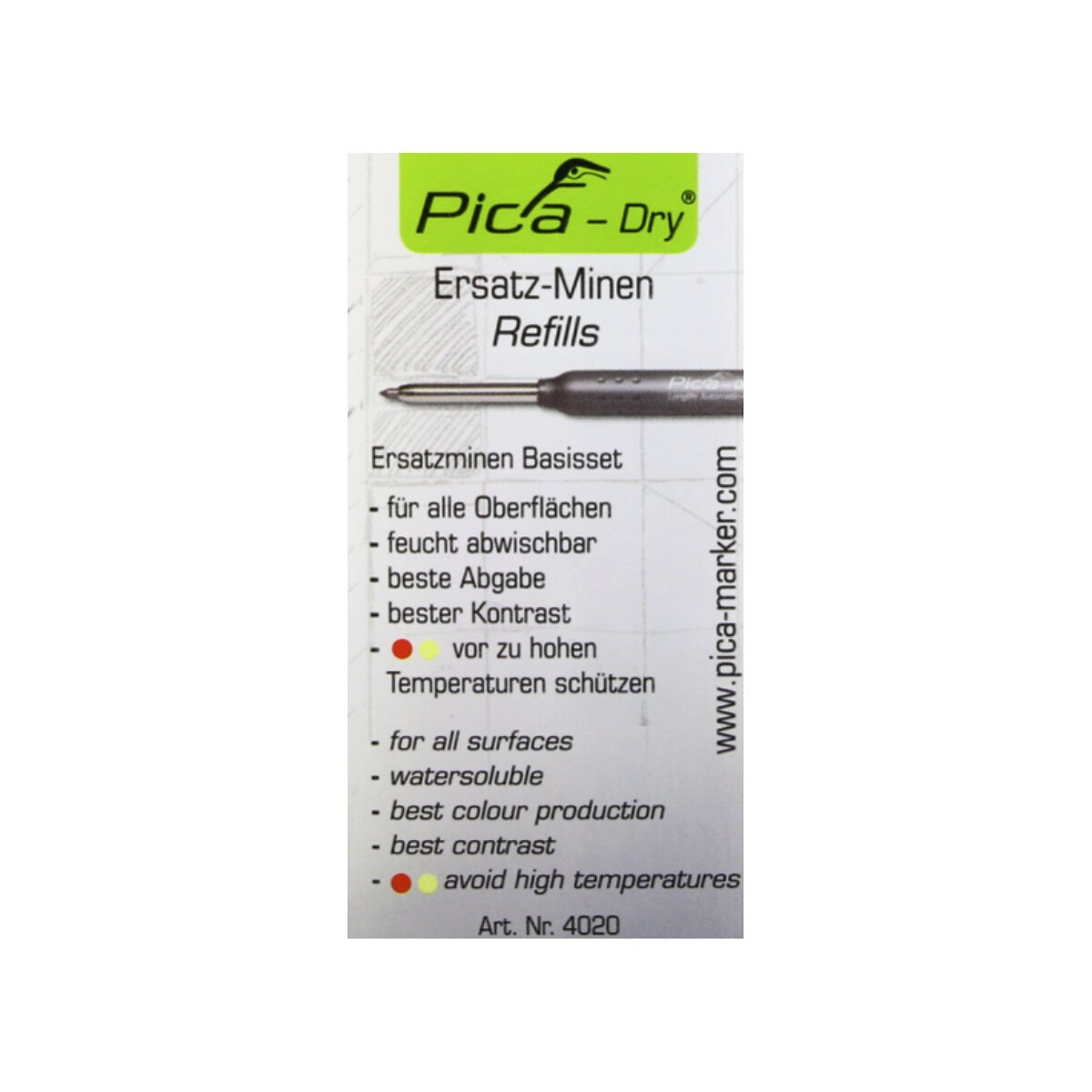Contenu de la livraison: - 8x Pica DRY Mines de rechange Noir hydrosoluble multi-usage. - 4x Pica DRY Mines de rechange rouge hydrosoluble multi-usage. - 4x Pica DRY Mines de rechange jaune hydrosoluble multi-usage. Description du produit: Ces mines de couleur de la maison Pica Dry convient à presque toutes les surfaces, qu'elles soient sèches ou humides, lisses ou rugueuses, poussiéreuses ou huileuses, claires ou foncées. Les marquages peuvent être effacés avec un chiffon humide sur les surfaces lisses. Les fils de couleur garantissent un excellent rendu et le meilleur contraste sur les matériaux. Elles sont livrées déjà affûtées et sont rangées dans une boîte en plastique pratique Pica Dry. Spécifications techniques: Fabricant : Pica Marker Numéro de fabricant : 4020_2 Longueur : 125 mm Diamètre : 2,8 mm Poids : 30 g