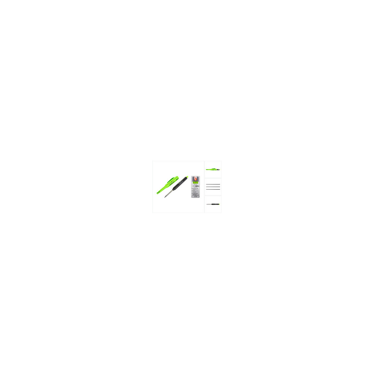 Contenu du paquet: - 1x Pica DRY Longlife Marqueur de chantier pour artisans professionnels (trou profond) avec mine de graphite (3030) - 10x Mine de remplacement graphite Pica DRY multi-usage ( 4030 ) Description du produit: Le marqueur de chantier Pica DRY est muni d'une mine graphite universelle FOR ALL 2B qui lui permet de faire des marquages sur presque tous les types de surfaces, sèches ou humides, lisses ou rugueuses, poussiéreuses ou huileuses. Le marqueur Dry pratique dispose d'un design compact et léger et il peut être facilement attaché à votre poche avant ou votre poche latérale à l'aide du clip spécial. Le mécanisme bouton-poussoir unique et de haute technologie rend la charge de la mine automatique avec juste une simple pression sur le bouton. Grâce au bouchon qui protège contre la poussière et l'humidité, le marqueur bénéficie d'une capacité de marquage extrêmement longue. Il existe un taille-mine à l'avant du bouchon pour tailler les mines selon une échelle de marquage graduée en millimètres pour une précision optimale. Spécifications techniques: longueur: 125 mm diamètre: 2,8 mm Poids: 30 g Mine: POUR TOUTE Mine de graphite 2B