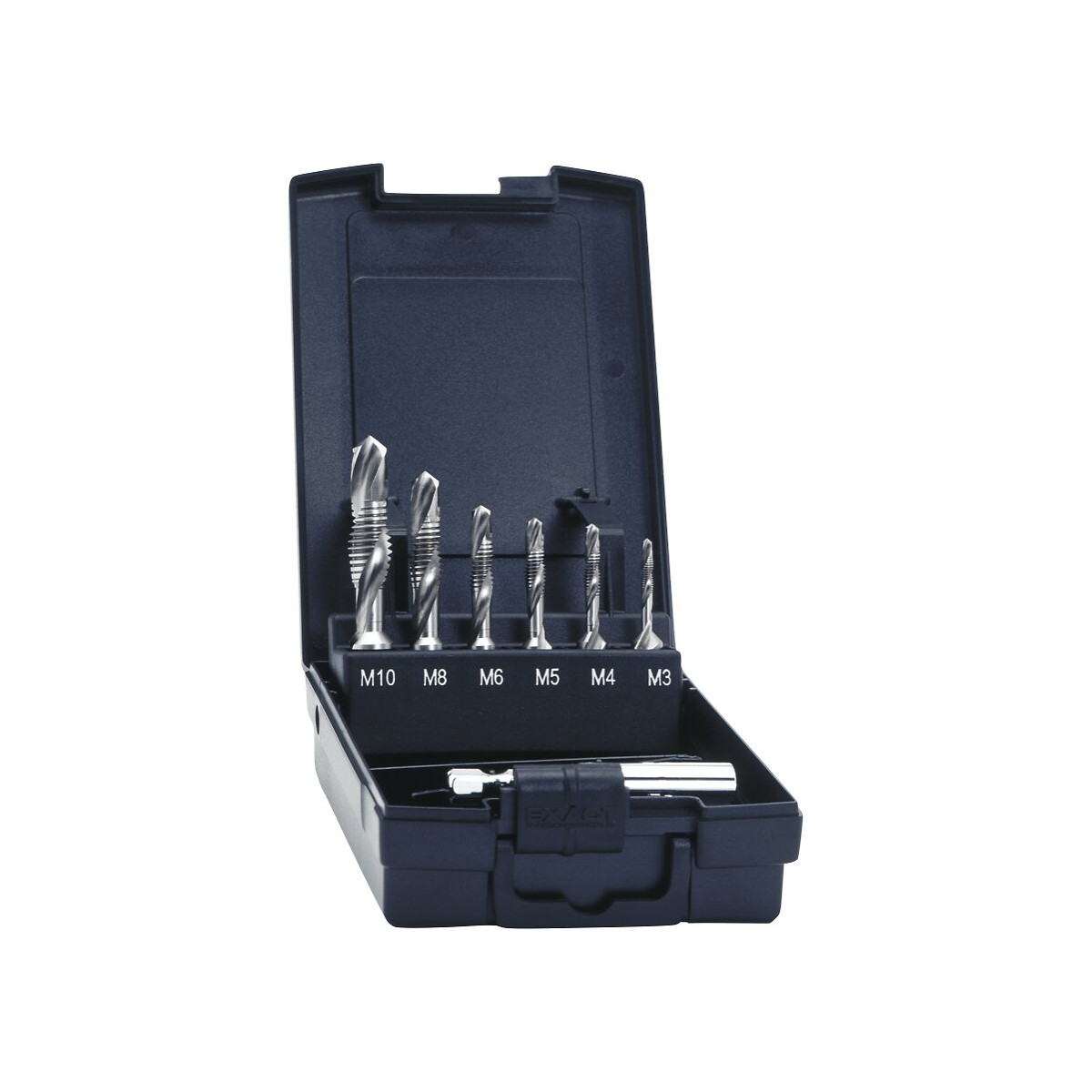 Contenu du paquet: - 6x Tarauds combinés ( M3 / M4 / M5 / M6 / M8 / M10 ) - 1x Adaptateur 825-25 (Mandrin porte-outil 1/4") - 1x Coffret de transport en plastique Description du produit: Le set de tarauds combinés d'EXACT est adapté pour tous vos travaux de filetage intérieur. Il vous permet ainsi de percer des trous, de découper des filets et de calibrer les bords des trous en une seule opération. Ce set est précisément conçu pour réaliser des filetages de diamètres M3 à M10. Les tarauds combinés de cet set sont équipés d'un porte-outil ROTAPLUS+ qui améliore la durée de vie de vos outils jusqu'à 50% et réduit ainsi le risque de détérioration. Ils sont fabriqués en acier HSS de haute qualité qui leur garantissent ainsi une plus longue durée de vie. Un adaptateur est également compris dans ce set pour servir d'extension lors de vos travaux dans des endroits difficilement accessibles. Ce set de tarauds d'EXACT est en plus livré dans un coffret en plastique de bonne qualité qui vous offre un bon rangement et une accessibilité facile à vos tarauds. Spécifications techniques: Fabricant : EXACT Numéro de fabricant : 05910 Désignation du fabricant : SGE-Bit HSSG Matériau : acier HSS Taille des tarauds : M3 / M4 / M5 / M6 / M8 / M 10 Type de filetage : filetage interne métrique (trou traversant)