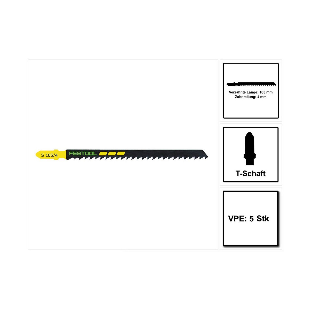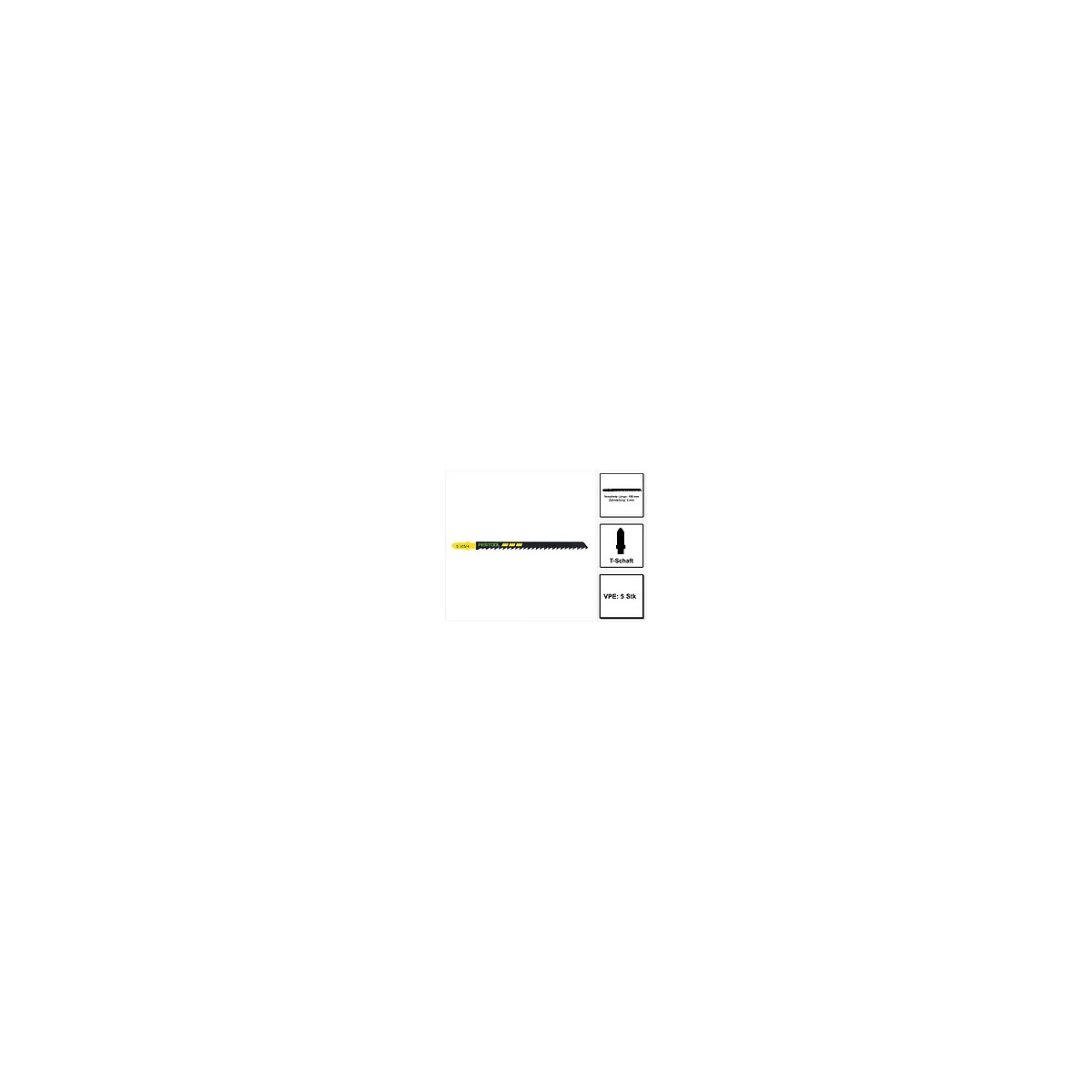 Contenu du paquet: - 5x Festool S 105/4 WOOD Basic Lames de scie sauteuse ( 204315 ) Description du produit: La lame de scie sauteuse de base WOOD est conçue pour les coupes rapides grâce aux dents de sertissage et fournit d'excellents résultats avec les matériaux à base de bois. L'acier HCS de haute qualité (acier à haute teneur en carbone) le rend particulièrement stable. La longueur dentelée de 105 mm au pas de 4 mm permet l'usinage de pièces d'une épaisseur maximale de 60 mm. Spécifications techniques: Longueur dentée: 105 mm Pas de dents: 4 mm Epaisseur maximale de la pièce: 60 mm Porte-outils: T-shaft Nombre: 5 pièces