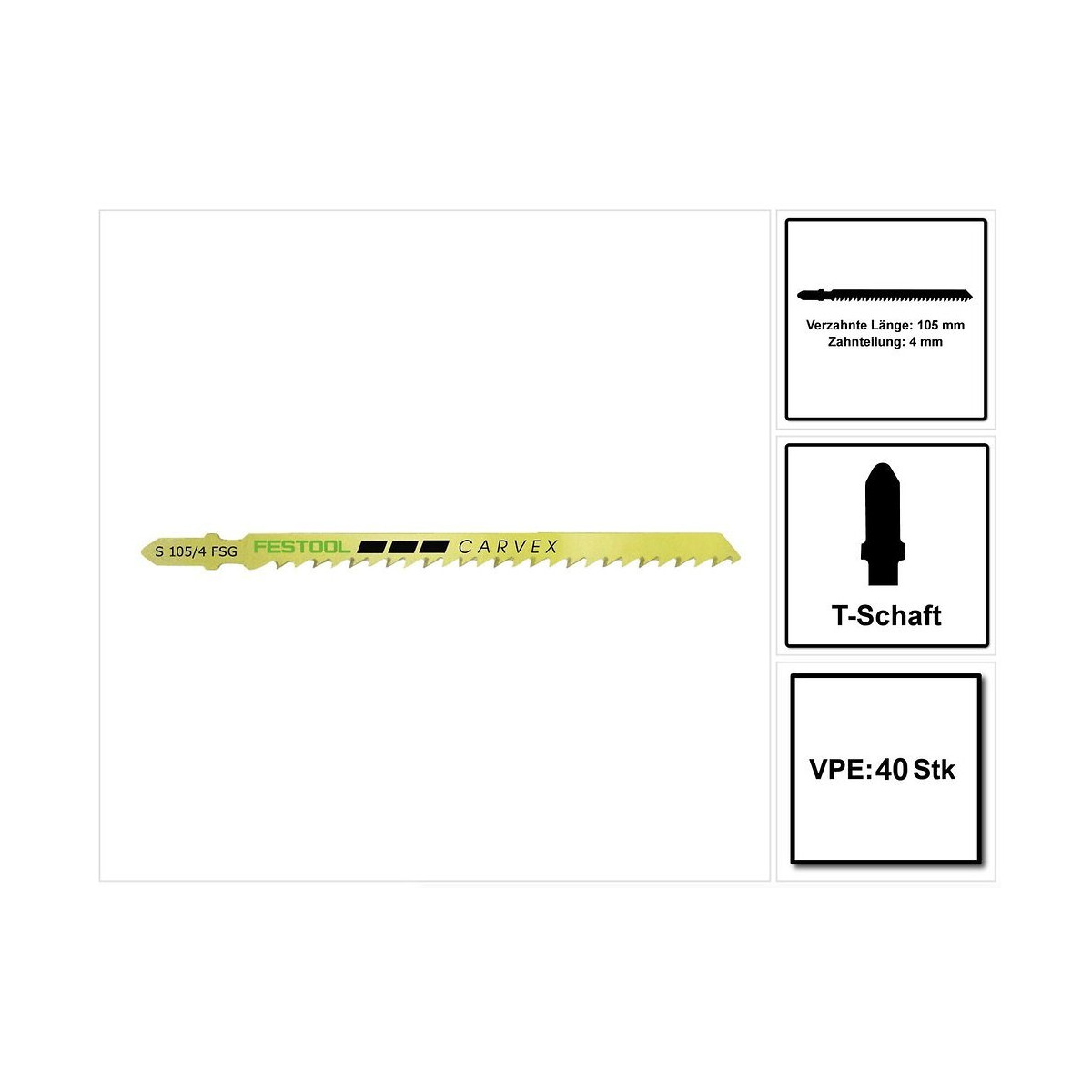 Contenu du paquet: - 40x Festool S 105/4 FSG WOOD Universal Lames de scie ( 204332 ) Description du produit: La lame de scie sauteuse universelle WOOD pour coupes à angle droit couvre tous les matériaux à base de bois et convient même aux coupes courbes. L'acier HCS de haute qualité (acier à haute teneur en carbone) le rend particulièrement stable. En conjonction avec un rail de guidage, les coupes droites réussissent parfaitement. Les dents limitées ainsi que la coupe conique garantissent une coupe correcte. La longueur dentelée de 105 mm au pas de 4 mm permet l'usinage de pièces d'une épaisseur maximale de 60 mm. Spécifications techniques: Longueur dentée: 105,00 mm Pas de dent: 4 mm Epaisseur maximale: 60,00 mm Enregistrement: T-Schaft Nombre: 40 pièces