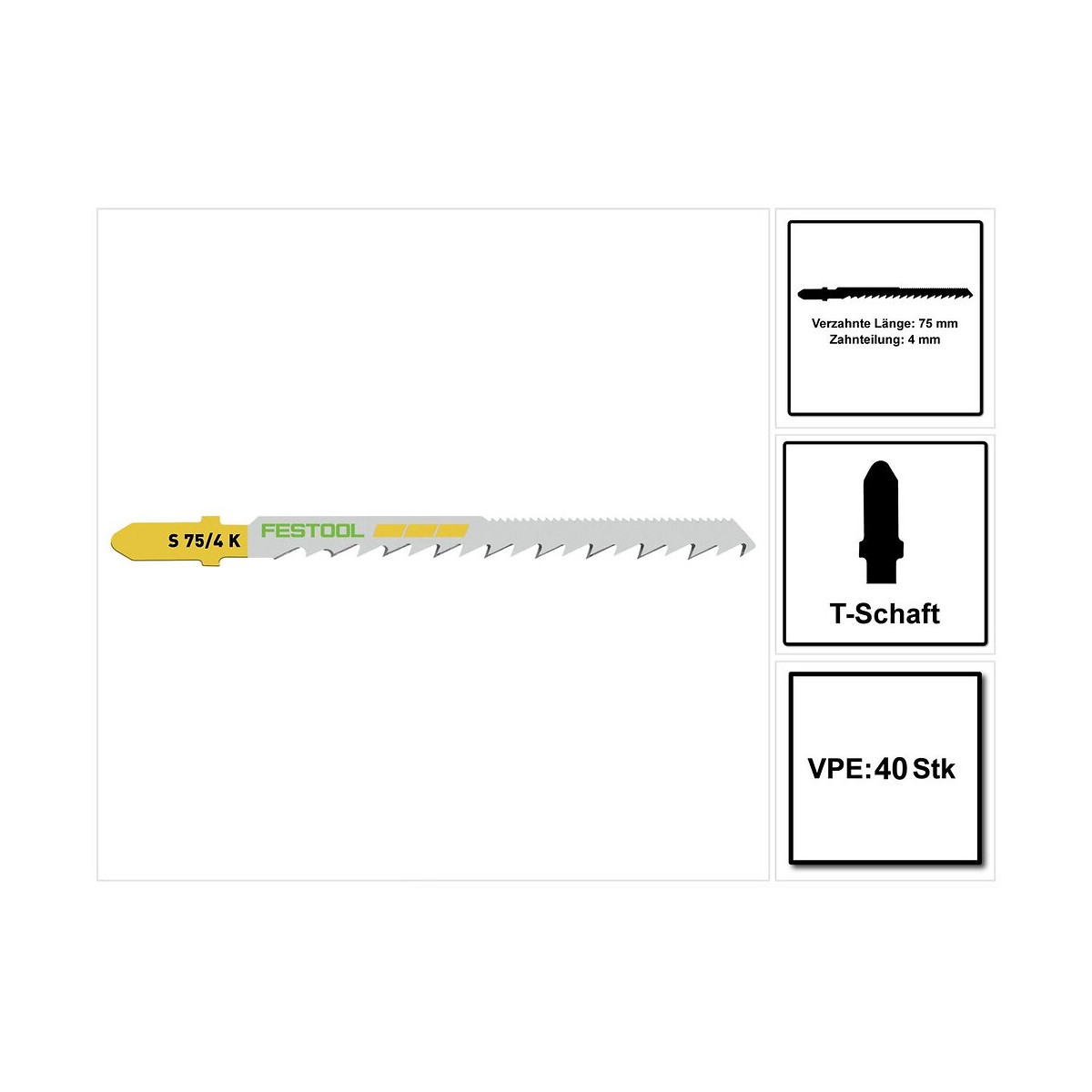 Contenu du paquet: - 40x Lame de scie S 75/4 K WOOD Curves ( 204266 ) dDescription du produit: La lame de scie sauteuse WOOD Curves est parfaite pour les courbes et même pour les rayons très serrés. Au sommet de la lame de la scie, le pignon arrière est denté, ce qui se détache dans les courbes et les matériaux arrière particulièrement serrés. Les dents dentelées de la lame de scie assurent une coupe rapide et un résultat net. L'acier HCS (acier à haute teneur en carbone) est idéal pour le bois et les panneaux de fibres. Avec une longueur dentée de 75 mm et un pas de 4 mm, il est possible d'usiner une épaisseur de pièce maximale de 30 mm. La norme de qualité Festool garantit une longue durée de vie. Spécifications techniques: Longueur dentée: 75 mm Pas de dents: 4 mm Epaisseur maximale de la pièce: 30 mm Nombre: 40 pièces Enregistrement: T-Schaft