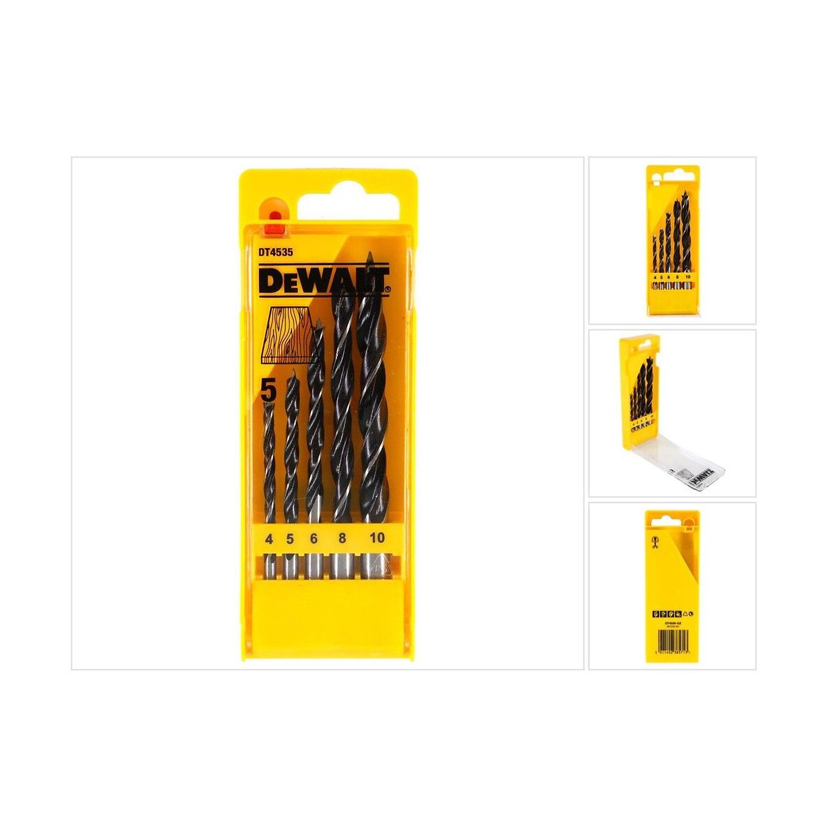 Contenu du paquet: - 1x DeWalt DT 4535-QZ Jeu de forets hélicoïdaux à bois, 5 pièces ( 567228-001 ) Description du produit: Ces forets hélicoïdaux pour bois de DeWalt sont parfaits pour une utilisation dans les perceuses DT 4535-QZ de DeWalt (à batterie et câblés). Ils conviennent au perçage du bois, des panneaux durs, des panneaux de particules, du contreplaqué et des bois durs et tendres naturels. Ils sont particulièrement adaptés au forage de trous de goujons et de trous débouchants. Spécifications techniques: 1x 4 mm 1x 5 mm 1x 6 mm 1x 8 mm 1x 10 mm