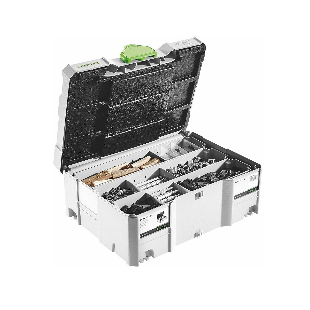 Contenu de la livraison: - 32x Boulons d'ancrage SV-AB D14 - 16x Boulons doubles SV-DB D14 - 1x Cheville à expansion 32x SV-SA D14 - 32x Chevilles DOMINO, hêtre D 14 x 75 - 2x 32 Ancres transversales SV-QA D14 - 1x Clé Allen SW 4 - 1x Elargissement SV-V D14 pour 32 ancres transversales - 32x Capuchons brun foncé SV-AK D14 brn1 - 32x Couvercles brun clair SV-AK D14 brn2 - 1x Coffret de transport SYSTAINER Description du produit: Une révolution créée pour les connexions en bois à toute épreuve. Les nouveaux connecteurs d'angle et de surface ont été développés de manière révolutionnaire pour la toupie DOMINO XL DF 700. La flexibilité maximale et le rendement élevé convainquent tout au long de la ligne, de sorte que les connexions de cadre, de cadre et de plaque (à partir d'une épaisseur de matériau de 30 mm) peuvent être obtenues avec la plus grande précision. La gamme de connecteurs DOMINO se caractérise par des forces d'extraction et de charge élevées. L'avantage décisif est le gain de temps, des modèles inutiles ou d'autres accessoires ne sont plus nécessaires. La mesure et le marquage chronophages appartiennent au passé, un simple fraisage sur la longueur de la machine suffit. Un look de haute qualité est garanti par les 3 couleurs pour les connexions d'angle. Festool est synonyme de la plus haute qualité, vous pouvez le voir avec ce produit à travers le conseil d'administration. Spécifications techniques: Numéro du manufacturier: 201353 Convient pour: fraiseuse à goupilles XL DF 700 Accessoires nécessaires: coupe DOMINO D 14 (497871) - 32x Boulons d'ancrage SV-AB D14 - 16x Boulons doubles SV-DB D14 - 1x Cheville à expansion 32x SV-SA D14 - 32x Chevilles DOMINO, hêtre D 14 x 75 - 2x 32 Ancres transversales SV-QA D14 - 1x Clé Allen SW 4 - 1x Elargissement SV-V D14 pour 32 ancres transversales - 32x Couvercles brun foncé SV-AK D14 brn1 - 32x Couvercles brun clair SV-AK D14 brn2 - 1x Coffret de transport SYSTAINER