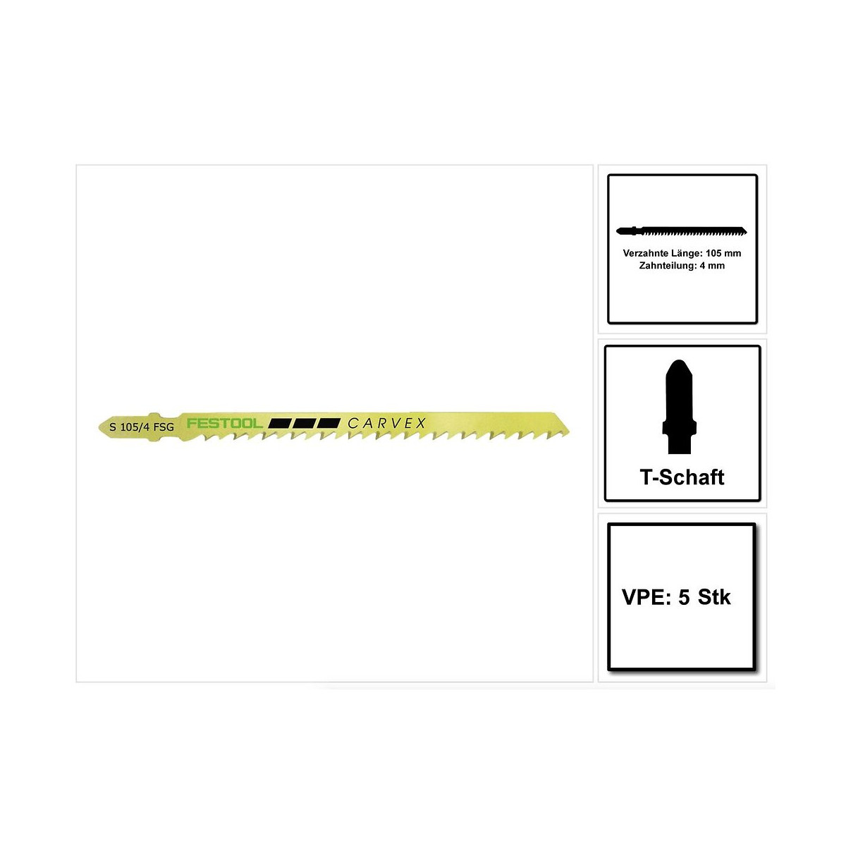 Contenu du paquet: - 5x Festool S 105/4 FSG WOOD Universal Lame de scie sauteuse ( 204327 ) Description du produit: La lame de scie sauteuse universelle WOOD pour coupes à angle droit couvre tous les matériaux à base de bois et convient même aux coupes courbes. L'acier HCS de haute qualité (acier à haute teneur en carbone) le rend particulièrement stable. En conjonction avec un rail de guidage, les coupes droites réussissent parfaitement. Les dents limitées ainsi que la coupe conique garantissent une coupe correcte. La longueur dentelée de 105 mm au pas de 4 mm permet l'usinage de pièces d'une épaisseur maximale de 60 mm. Spécifications techniques: Longueur dentée: 105 mm Pas de dents: 4 mm Epaisseur maximale de la pièce: 60 mm Porte-outils: T-shaft Nombre: 5 pièces