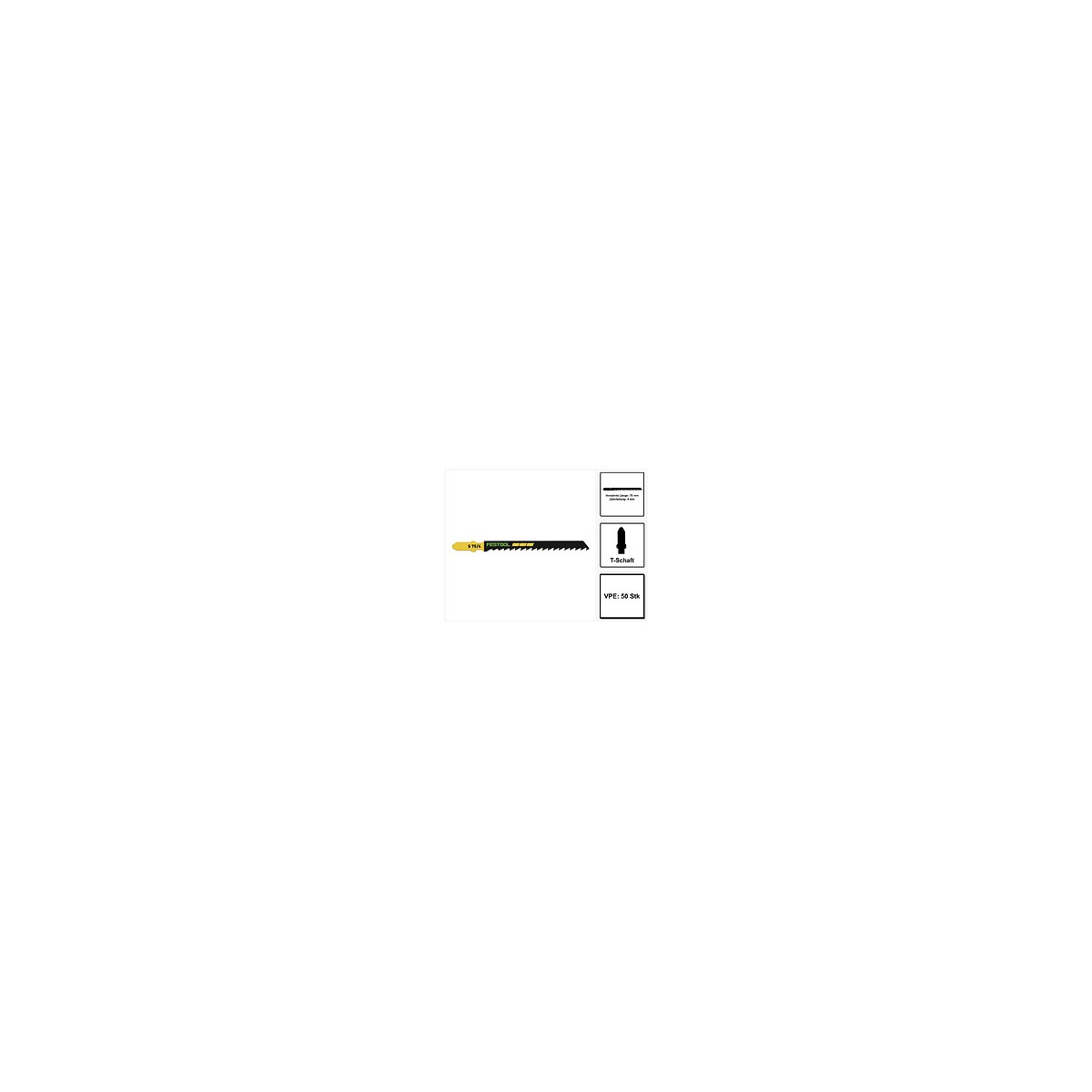 Contenu de la livraison: - 50x Festool S 75/4/50 WOOD Basic Lames de scie sauteuse ( 2x 204306 ) Description du produit: La lame de scie sauteuse WOOD Basic est conçue pour des coupes rapides grâce à ses dents fixes et offre d'excellents résultats dans les matériaux à base de bois. L'acier HCS de haute qualité (acier à haute teneur en carbone / acier à haute teneur en carbone) le rend particulièrement stable. La longueur dentée de 75 mm avec un pas de denture de 4 mm permet d'usiner des pièces d'une épaisseur maximale de 30 mm. Spécifications techniques: Longueur dentée: 75 mm Pas de dent: 4 mm Epaisseur maximale de la pièce: 30 mm Enregistrement: arbre en T Nombre: 50 pièces