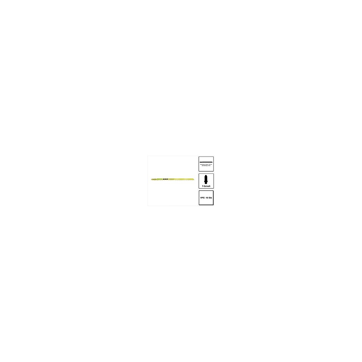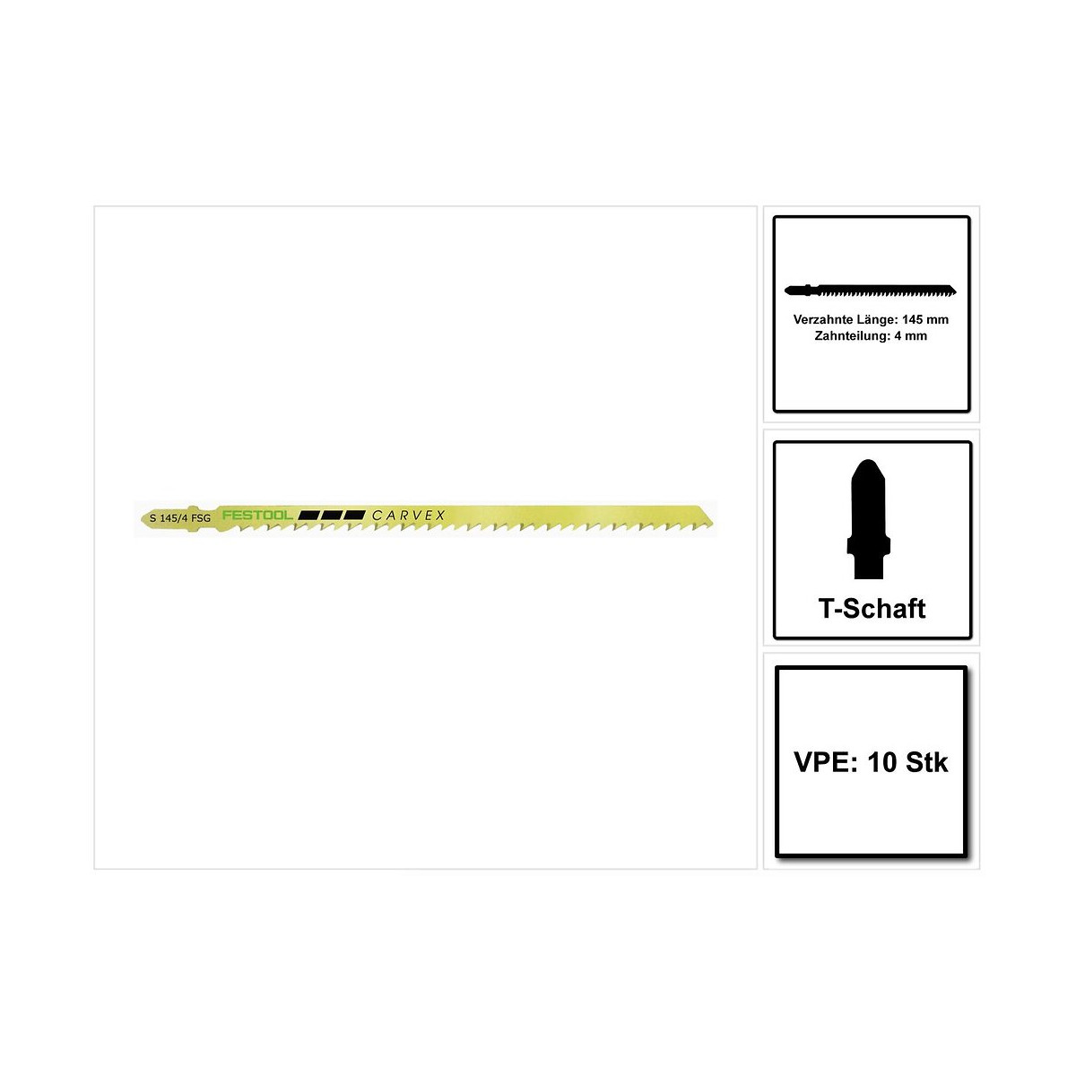 Contenu du paquet: - 10x Festool S 145/4 FSG WOOD Universal Lames de scie ( 204335 ) Description du produit: La lame de scie sauteuse universelle WOOD pour coupes à angle droit couvre tous les matériaux à base de bois et convient même aux coupes courbes. L'acier HCS de haute qualité (acier à haute teneur en carbone) le rend particulièrement stable. En conjonction avec un rail de guidage, les coupes droites réussissent parfaitement. Les dents limitées ainsi que la coupe conique garantissent une coupe correcte. La longueur dentée de 145 mm au pas de 4 mm permet l'usinage de pièces d'une épaisseur maximale de 100 mm. Spécifications techniques: Longueur dentée: 145 mm Pas de dent: 4 mm Epaisseur maximale: 100 mm Enregistrement: T-Schaft Nombre: 10 pièces