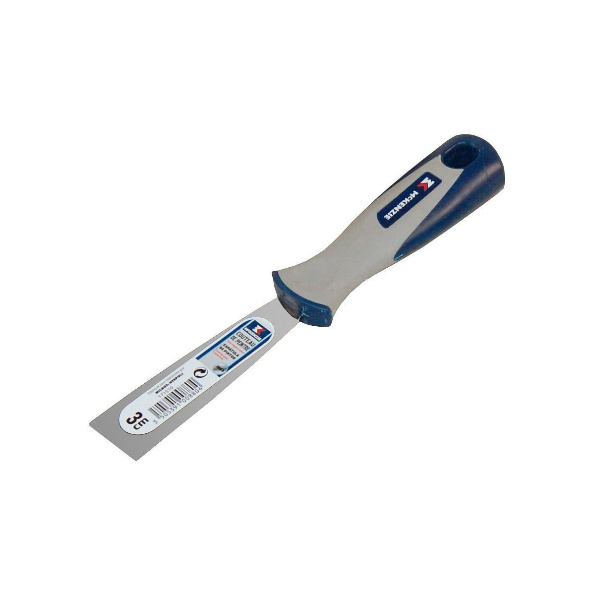 Couteau de peintre inox manche bi-matière ergonomique 3 cm pour ouvrir et reboucher les fissures et les trous sur les enduits.Spécifications techniques