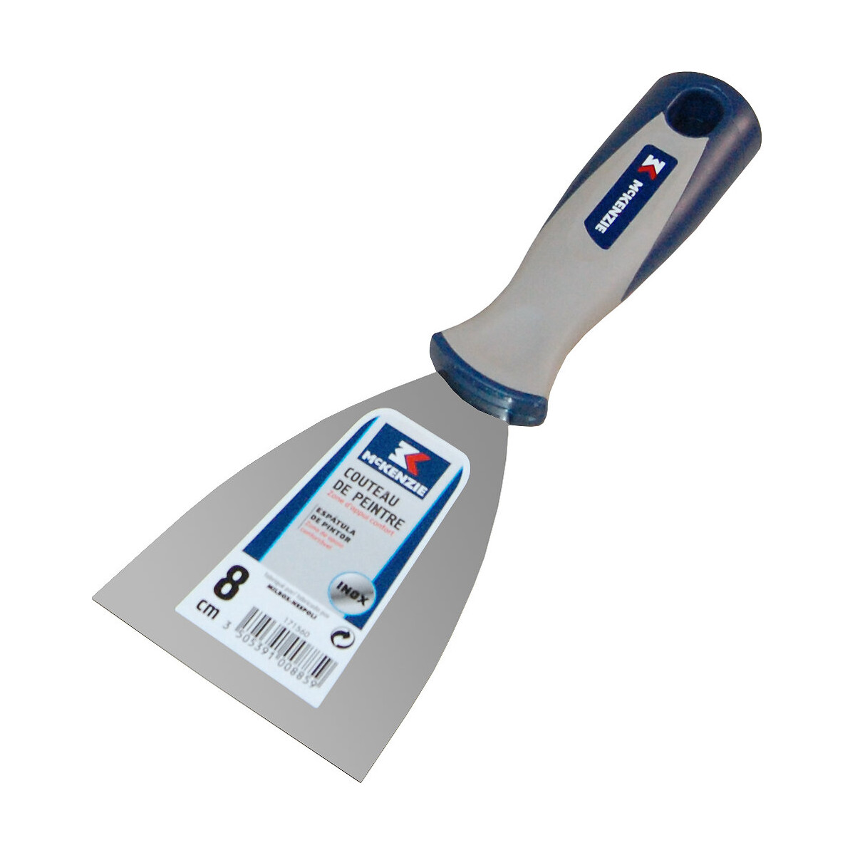 Couteau de peintre inox manche bi-matière ergonomique 8 cm pour ouvrir et reboucher les fissures et les trous sur les enduits.Spécifications techniques