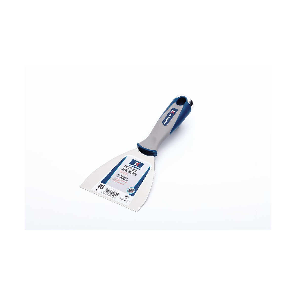 Couteau américain inox manche bi-matière 10 cm pour pose et finition joint de plaques de plâtre. Embout choc métal pour frappes occasionnelles.Spécifications techniques