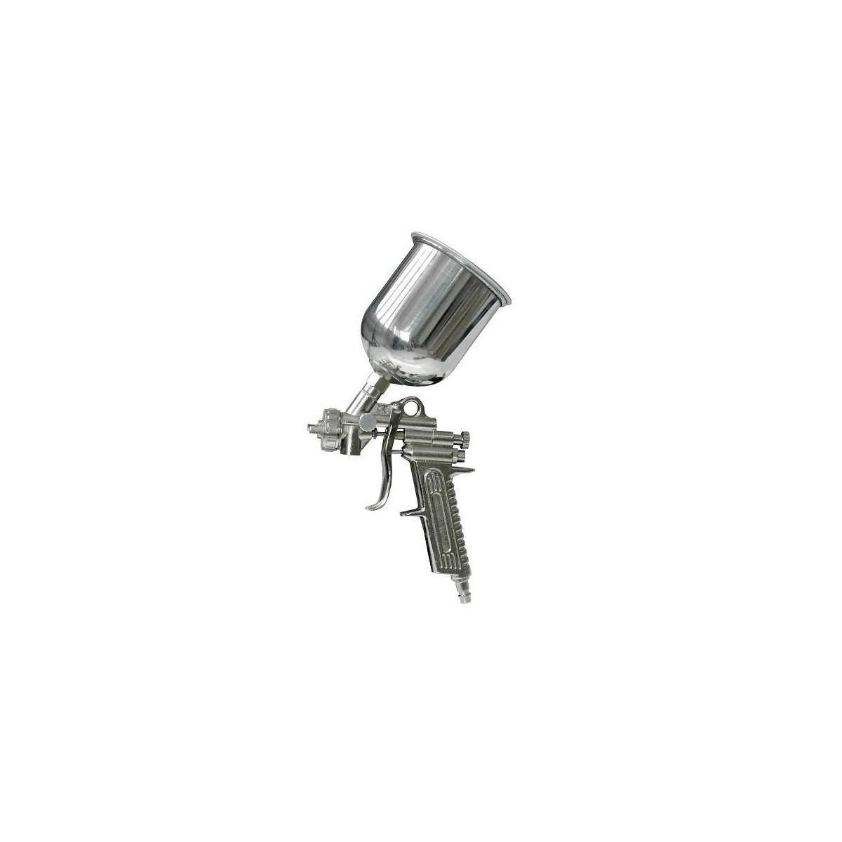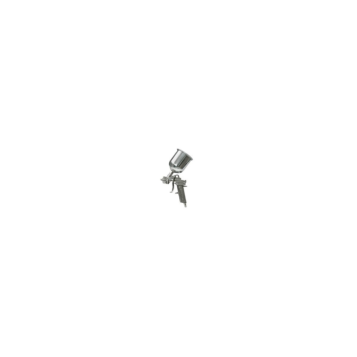 Ce pistolet peinture est conçu pour appliquer du vernis à l'eau, des solvants et des teintures ainsi que les substances protégeant le métal tel que l'émail acrylique. Il est facile d'utilisation. Il est équipé d'un godet en métal de 500 ml. L'outil est adapté aux compresseurs., CARACTÉRISTIQUES TECHNIQUES: Pression d'utilisation recommandée : 3-5 bar, Raccord rapide : 1/4", Contenance du godet : 500 ml, Débit d'air : 118-201 l/min, Poids : 0,65 kg