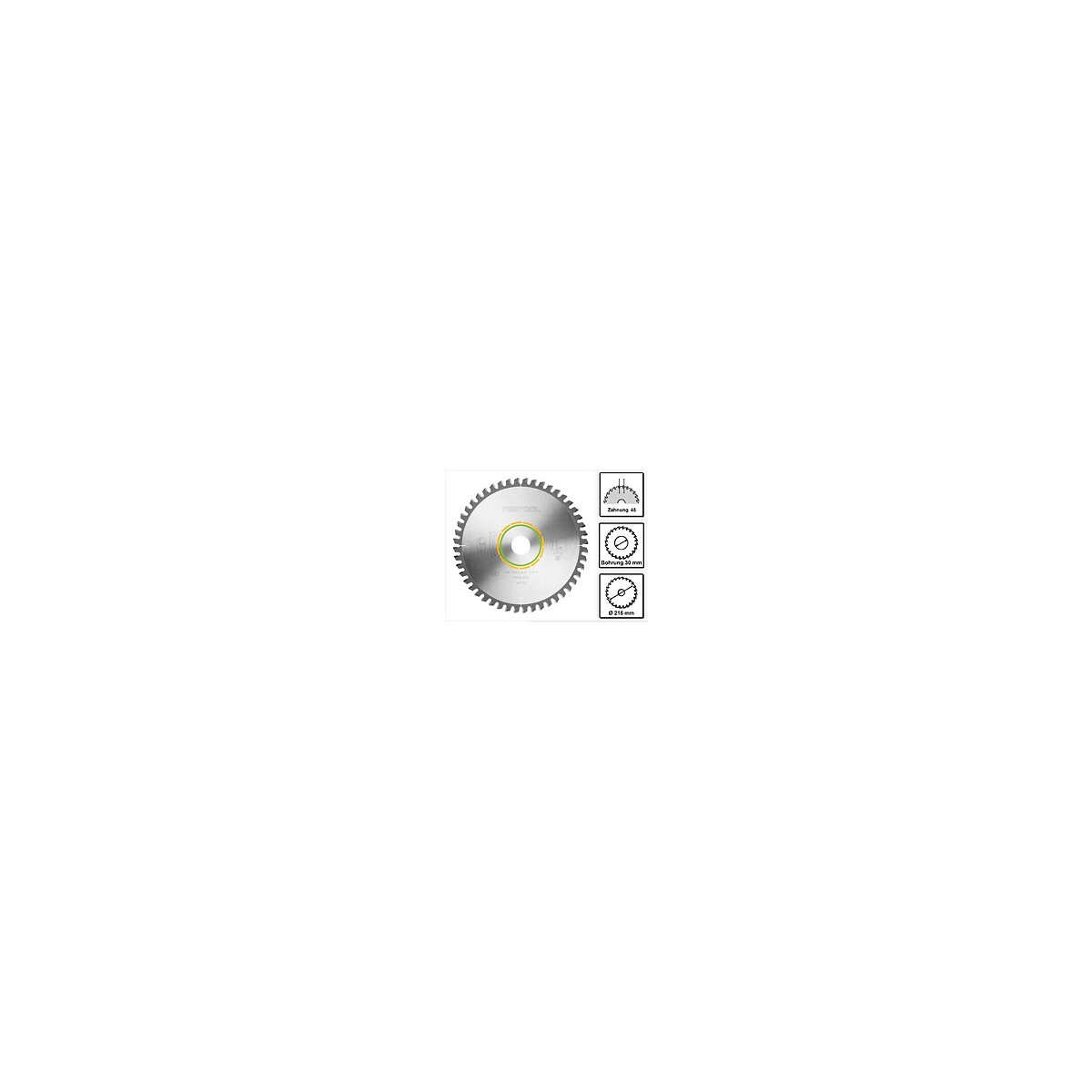 Contenu du paquet: - 1x Lame de scie circulaire denture fine W48 ( 491050 ) 216 x 2,3 x 30 Description du produit: La lame de scie à denture fines Festool W 48 se caractérise par ses sections transversales nettes et à faible déchirure. Il peut être utilisé de différentes manières et pour les panneaux de travail, les parquets, les plastiques durs, le PVC, la coupe transversale en bois massif, les panneaux de contreplaqué, les multiplex / contreplaqués, le verre acrylique et les panneaux de fibres à densité moyenne MDF. Le fabricant recommande un niveau de vitesse compris entre 3 et 6 pour l’usinage. Il est compatible avec le SYMMETRIC SYM 70. Spécifications techniques: Diamètre: 216mm Largeur de coupe: 2,30 mm Ø de trou: 30 mm Nombre de trou: 48 Forme des dents: W Angla d'inclinaison: -5,00º Nombre de pièce: 1