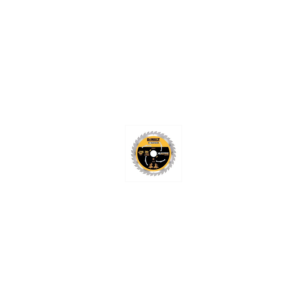 Contenu du paquet: - 1x DeWalt DT 99569 Lame de scie circulaire Extreme Runtime 216 x 30 mm Description du produit: La lame de scie circulaire DT99569 de DeWalt convient aux scies circulaires stationnaires et sans fil ; elle impressionne par ses 53 % en plus de coupes par charge de batterie pour les scies circulaires Flexvolt de DeWalt. Cette lame extra-fine, dotée d'une géométrie unique de dents alternées et trapézoïdales garantit d'excellents résultats de coupe. Les angles optimisés de ses dents ainsi que leur lignes anti-vibration réduisent les efforts et les perturbations pendant le sciage. Grâce à ses dents en carbure de qualité supérieure, cette lame de scie circulaire se démarque par sa longue durée de vie. Spécifications techniques: Diamètre de la lame de scie : 216 mm Diamètre de l'alésage : 30 mm Nombre de dents : 36 Max. 7000 tr/min