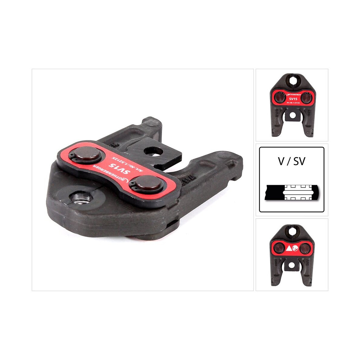 Contenu du paquet: - 1x Rothenberger Mâchoire de presse Standard SV15 pour machines à presser ROMAX 4000 ( 015212X ) Description du produit: Cette mâchoire de presse Rothenberger originale convient aux presses compatibles avec le système et aux machines de presse. Elle est constituée d’acier spécial très résistant. Elle convient à un pressage sûr et précis de manière optimale. Les mâchoires de pression standard conviennent aux modèles ROMAX® 4000, ROMAX® 3000, ROMAX® 3000 AC et ROMAX® AC ECO avec une poussée axiale constante de 32 - 34kN et des mors compatibles. Ils peuvent également être utilisés dans des produits d'autres fabricants tels que Rems. Spécifications techniques: Poids du produit: 1,905 kg Diamètre de l'espace de travail (jusqu'à): 15 mm Mors de presse pour le sertissage des raccords selon le système: Ø 15 mm (métal) Hauteur du produit: 3,9 cm Description du produit: Mâchoire de presse standard type SV