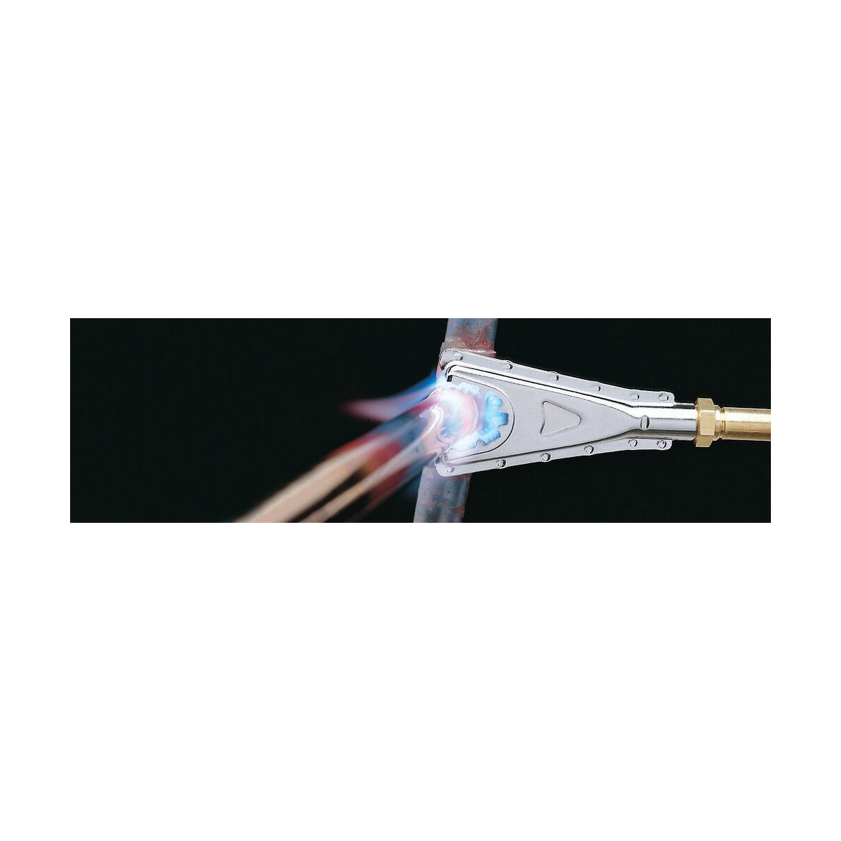 Brûleur Chalutorch / Chalugaz à flamme enveloppante Un travail rapide, un plus grand confort et de meilleures soudures. Utilisations : permet de chauffer plus rapidement et uniformément des tuyaux (tout autour) jusqu’à un diamètre de 22 cm. Permet de réaliser tous les travaux de brasage fort, mais également certaines opérations de soudo-brasage. Débit : 100 g/h.Spécifications techniques