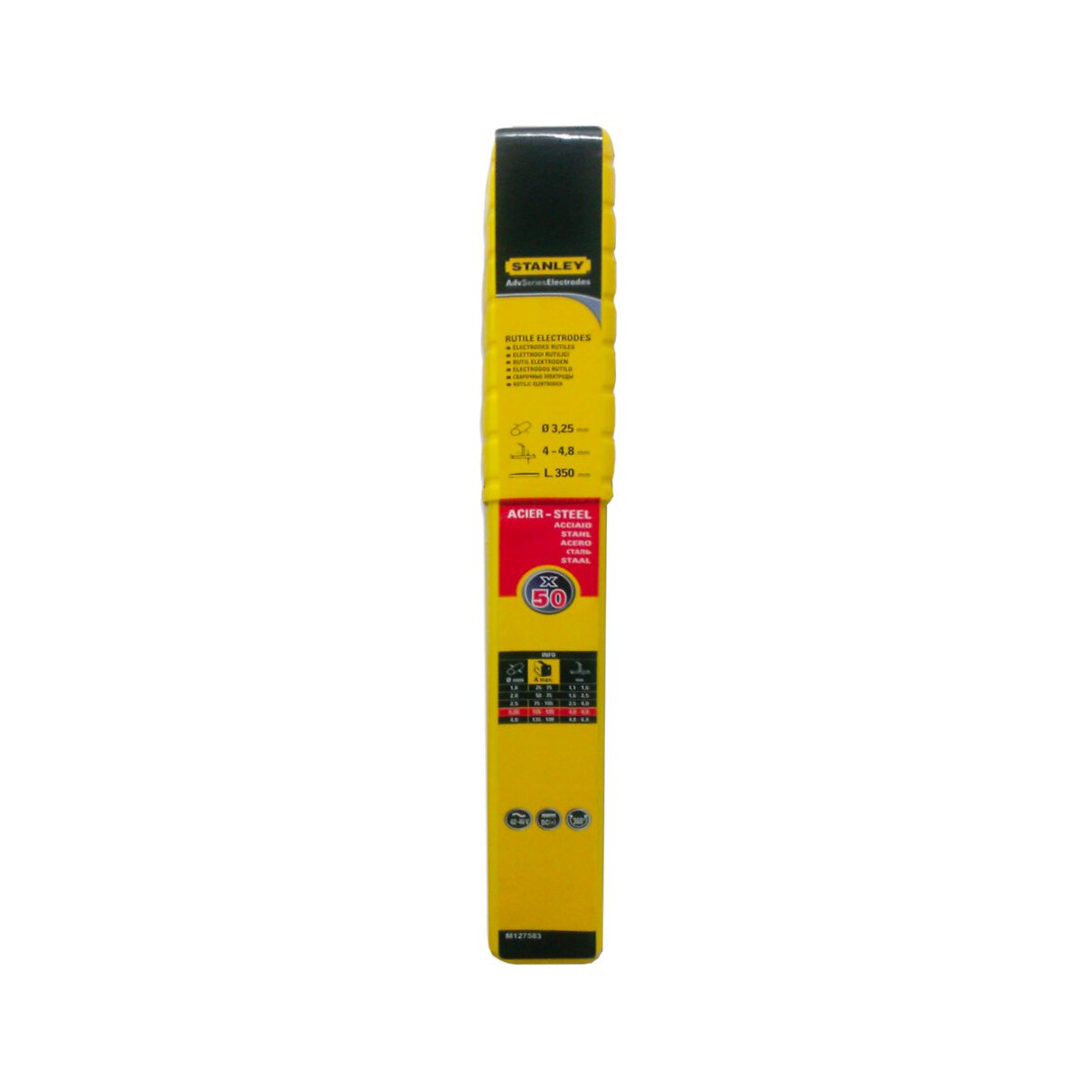 50 électrodes acier diamètre 3,25mm*350mm. Caractéristiques : - Respect de la norme E6013. - Multiposition. - Electrodes rutiles pour fer courant. - Idéal pour : ferronnerie, tôlerie, serrurerie, réparation de pièces métalliques.Spécifications techniques