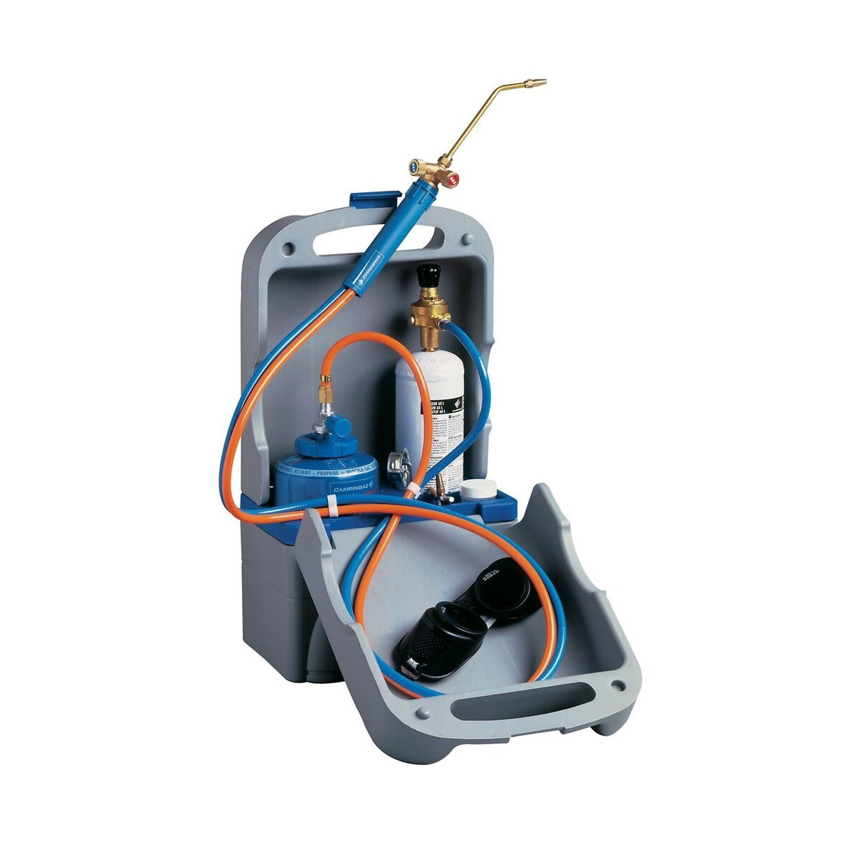 Poste Bi-gaz Oxypower CV60, idéal pour les utilisations occasionnelles et les travaux de soudage de petites envergures. Peut être utilisé coffret ouvert ou fermé. Température de flamme : 2850°C. Fonctionne avec cartouche jetable 60L d’oxygène et cartouche butane/propane CV 470 Plus (inclus). Livré avec 1 buse n°3 + 4 micro-lances, lunettes, allume-gaz et manuel d’utilisation. Coffret de rangement et de transport en polyéthylène avec poignée, accueillant le poste et tous ses accessoires. Contrôle des débits : robinet détenteur oxygène réglable, robinet cartouche CV470 Plus avec clapet anti-retour. Poids : 4,6 kg.Spécifications techniques
