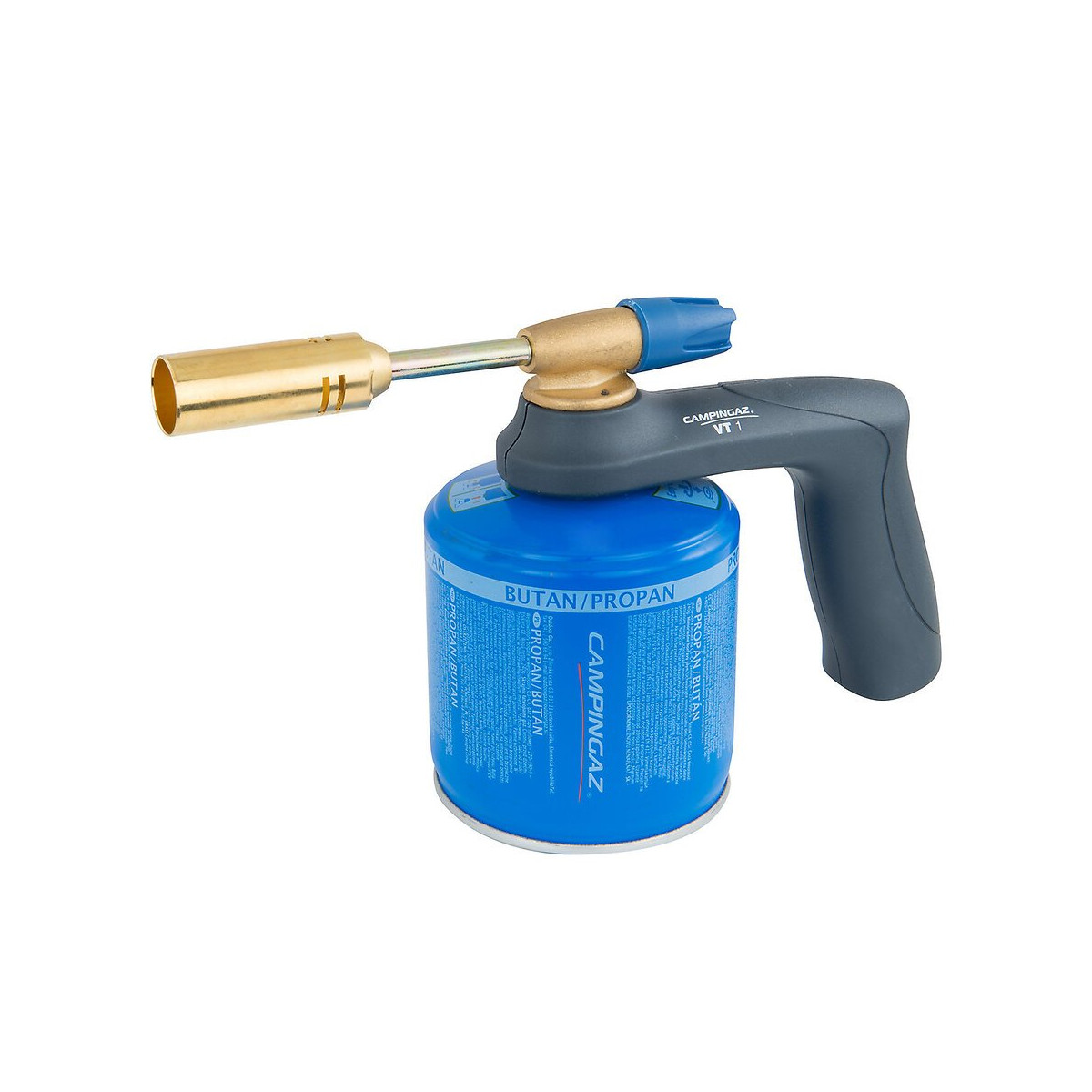 Lampe à souder VT 1 Lampe à souder sur cartouche à valve. L'appareil se connecte et se déconnecte de sa cartouche, même pleine, en toute simplicité, pour faciliter le rangement. Puissance ajustable. Température de flamme : 1750°C. Connexion Easy Clic® Plus ¼ de tour. Brûleur en laiton haute performance. Équipée d’un brûleur en laiton X 1400, interchangeable avec les accessoires (XP 1650, X1650) vendus séparément pour multiplier les utilisations. Poignée Polypropylène résistante aux chocs. Autonomie : > 2h avec la CV300 Plus (cartouche butane/propane). Cet appareil doit être utilisé exclusivement avec les cartouches Campingaz CV300 Plus et CV470 Plus.Spécifications techniques