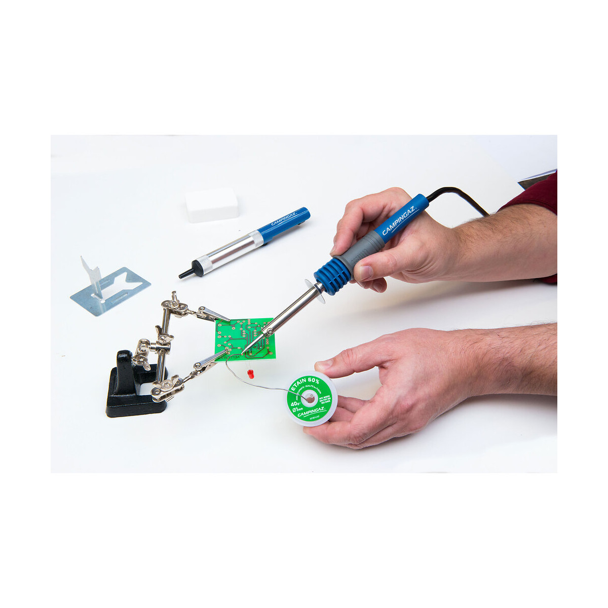 Le fer électrique L60 est recommandé pour les soudures moyennes en électricité, soudure sur cosses, petite ferblanterie, électronique et modélisme Puissance : 60Watts. Température de chauffe : 500°C. Dimensions de la panne : longueur 75 mm , diamètre 6 mm. Poids : 210 g.Spécifications techniques