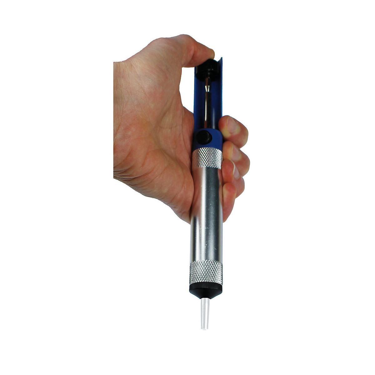 Permet de nettoyer facilement les pièces à assembler en enlevant les restes des anciennes soudures à l’étain par aspiration. Comment l’utiliser : - presser le piston au maximum - positionner l’extrémité de la pompe sur les anciennes soudures à enlever - libérer le piston en appuyant sur le bouton. - sa détente va créer un appel d’air qui va aspirer les anciennes soudures Corps en aluminium et plastique. Extrémité en PFTE. Dimensions : 19 x 2 cm. Poids : 50 g.Spécifications techniques