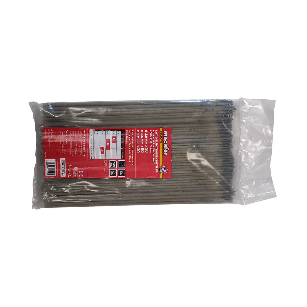 130 Electrodes panachées: 50 D2.0, 50D2.5 et 30 D3.2. Emballage sachetSpécifications techniques