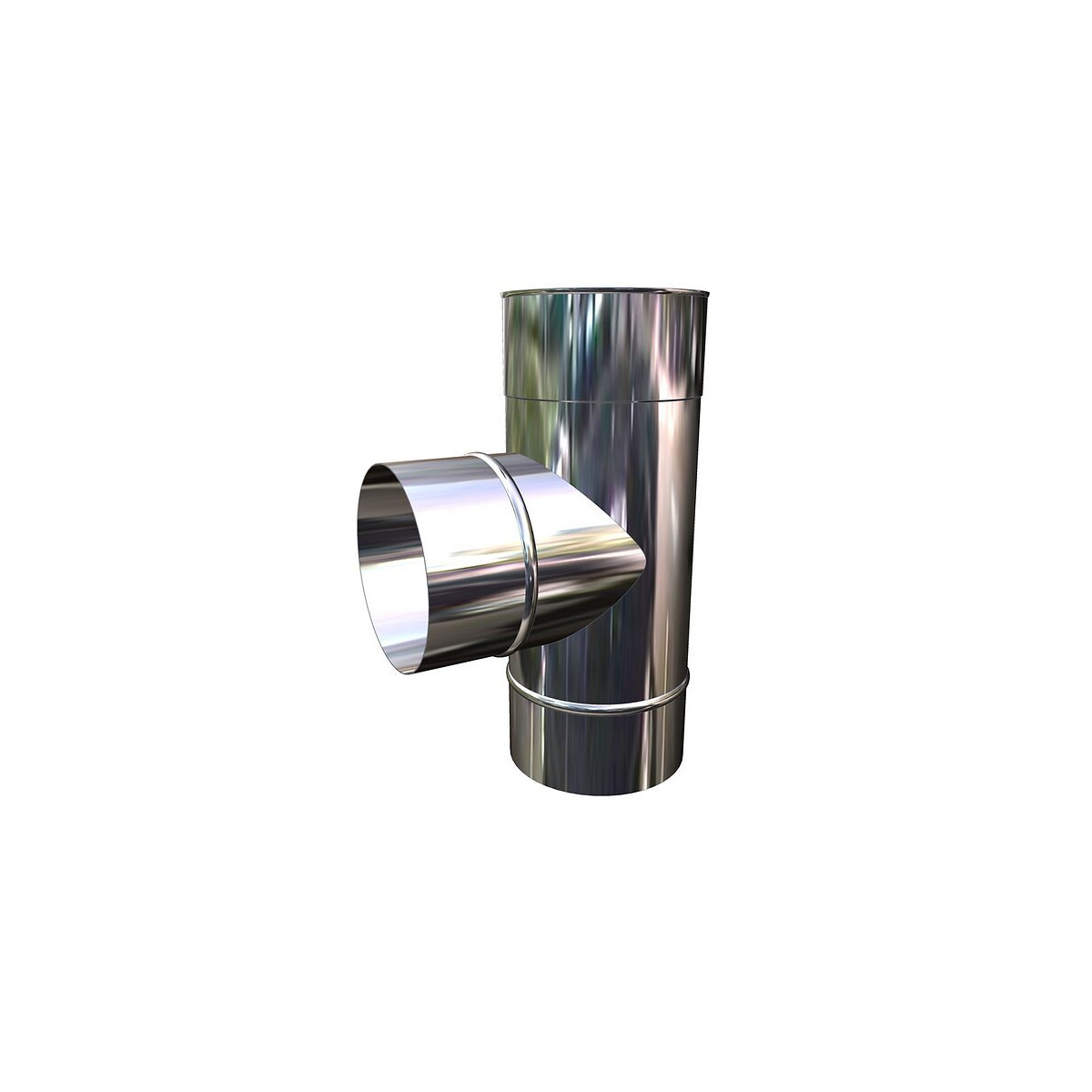 Ce té avec tampon TSP est en inox 304 soudé au laser. Il sert pour le raccordement arrière à un poêle. Caractéristiques du té avec tampon : Matière : inox 304 Diamètre : 13,9 cm Epaisseur : 0,4 mm