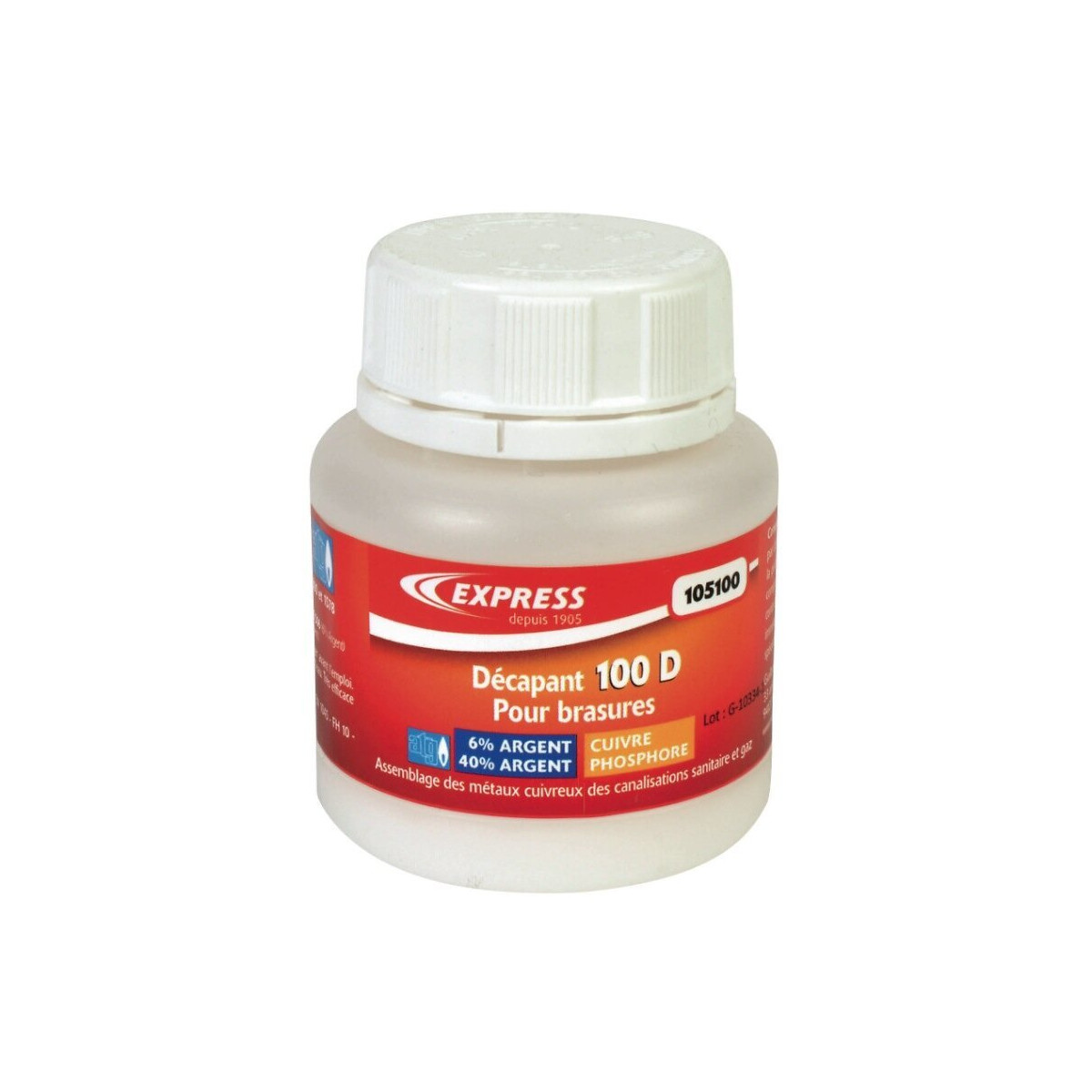 Flux décapant pour l'assemblage des métaux cuivreux des canalisations sanitaire et gaz. Agréé ATG. Brasure cuivre, phosphore, argent, acier, laiton Pot = 170 g
