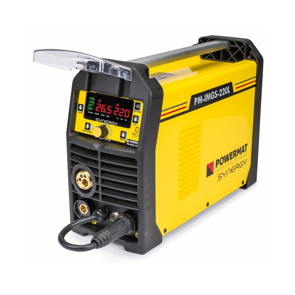 Ce poste à souder semi-automatique compact et léger, il est idéal pour les travaux de maintenance en atelier ou sur chantier. Les transistors IGBT utilisés permettent de réduire la consommation d'énergie, d'augmenter la résistance aux interférences et aux chutes de tension et d'obtenir de bonnes performances d'arc. Grâce à l'utilisation de la technologie des transistors IGBT, l'efficacité de l'appareil peut atteindre jusqu'à 60%. Il est doté d'une fonction Hot Start pour un démarrage optimal sans éclaboussures et Arc Force pour la conservation de l'arc pendant le contact avec le bain de fusion, CARACTÉRISTIQUES TECHNIQUES: Alimentation: 230V / 50Hz, Puissance MIG / MAG: 6,1kVA, Puissance TIG / MMA: 5,8kVA, Soudage: MIG / MAG / MMA / LIFT-TIG, Plage de réglage MIG / MAG: 30 - 220A ; Plage de réglage MMA: 20 - 200A, Cycle 100%: (MIG / MAG - 170A) ; Cycle: 60%: (MIG / MAG - 220 A), Fils de: 0,6 / 0,8 / 1,0 / [mm], Diamètre électrode: 1,6 mm - 4 mm, Tension de soudage : 12,5 - 30V, Mode de travil: 2T/4T, Bobine 5kg maxi, Qualité d'isolation: F ; Classe de protection: IP21S, Domension: 60 x 29 x 62 cm ; Poids: 9,75kg, HOT START + ANTI STICK + ARC FORCE, Livré avec: Pince de masse (-) : 200mm ; Porte-électrode MMA (+) : 210cm ; Torche EURO MIG / MAG : 400cm