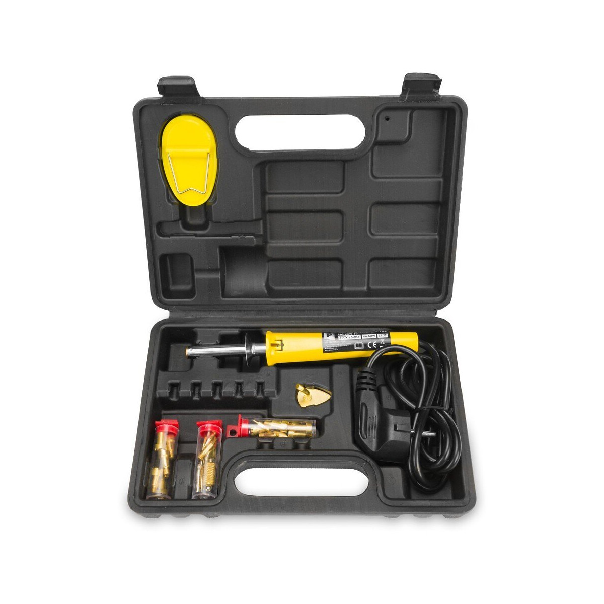 Fer à souder destiné à décorer des objets en bois, en cuir ou en liège. Le fer à souder est doté d'une puissance nominale de 60 W et possède une chauffe ultra-rapide et une ergonomie toute spécialement travaillée pour permettre une prise en main sûre et confortable. Cet appareil est livré avec 22 embouts, CARACTÉRISTIQUES TECHNIQUES: Alimentation: 230V / 50Hz, Puissance: 60 W, Température: 275 °C, 22 Pointes à souder inlus