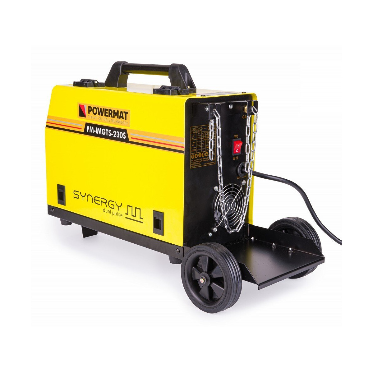 Le poste à souder semi-automatique SYNERGY DUAL PULSE a une très large gamme d'utilisation. Il permet de souder efficacement différents types de groupes de matériaux dans une large gamme d'épaisseurs de matériaux. Les transistors IGBT utilisés permettent de réduire la consommation d'électricité, d'augmenter la résistance aux interférences et aux chutes de tension et d'obtenir de bonnes performances de l'arc. Il est livré avec: pince de masse (-) : 200 cm, Porte-électrode MMA (+) : 210 cm, Support EURO MIG-MAG : 390 cm, bobine pour fil : 1,0 mm et 1,2 mm ; type U, masque de soudage, brosse avec marteau, tuyau à gaz 145 cm, CARACTÉRISTIQUES TECHNIQUES: Alimentation électrique : 230 V / 50 Hz, Consommation électrique MIG / MAG : 6,1kVA ; Consommation électrique TIG / MMA : 5,8kVA, Méthodes de soudage : MIG-MAG / MMA / LIFT-TIG, Gamme de courant de soudage MIG / MAG : 18 - 230 [A], Gamme de courant de soudage MMA : 26 - 230 [A], Gamme de courant de soudage TIG : 26 - 230 [A], Courant de soudage cycle de travail 100% : (MIG-MAG - 160 A), Courant de soudag cycle de travail 60 % : (MIG-MAG - 230 A), Courant de soudage cycle de travail 100% : ((MMA / TIG - 158 A), Courant de soudag cycle de travail 60 % : (MMA / TIG - 230 A), Diamètre du fil : 0,8 / 1,0 / 1,2 [mm], Diamètres d'électrodes : 1,6 mm - 5 mm, Tension de soudage : 10 - 42 [V], Modes de travail : 2T / 4T / Spécial 2T / Spécial 4T / Point, Réglage de l'inductance de soudage : -10 - 10, Bobines de fil : jusqu'à 5 kg max., Classe d'isolation : F; degré de protection : IP21S, Protection du réseau électrique : 25 A, Dimensions : 62 x 27 x 42 [cm] (longueur / largeur / hauteur); poids net : 12,35 kg