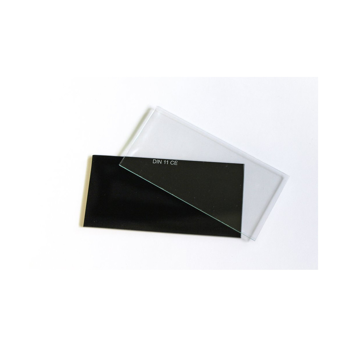 Jeu de verre 50x105 mm pour cagoule de soudeur. 1 Protane DIN 11 et 1 clair pour le soudage à l'arc.