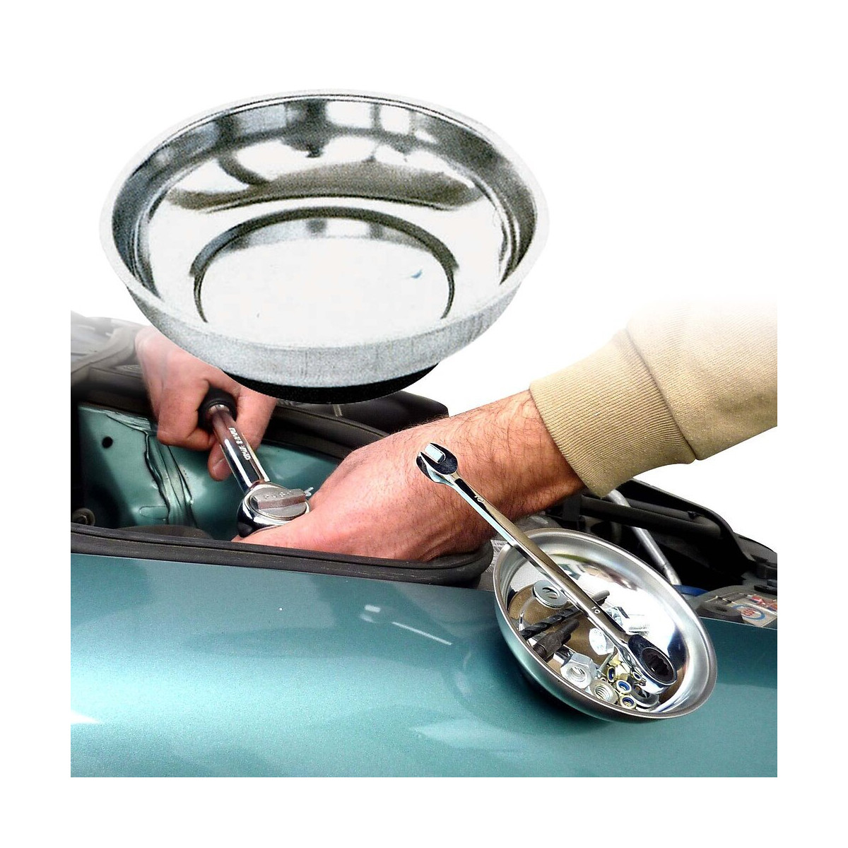 Bol de rangement magnétique qui permet de conserver les petites pièces métalliques sans risque de les perdre. Idéal lors du démontage d'objets comportant de nombreuses vis. Diamètre : 150 mm