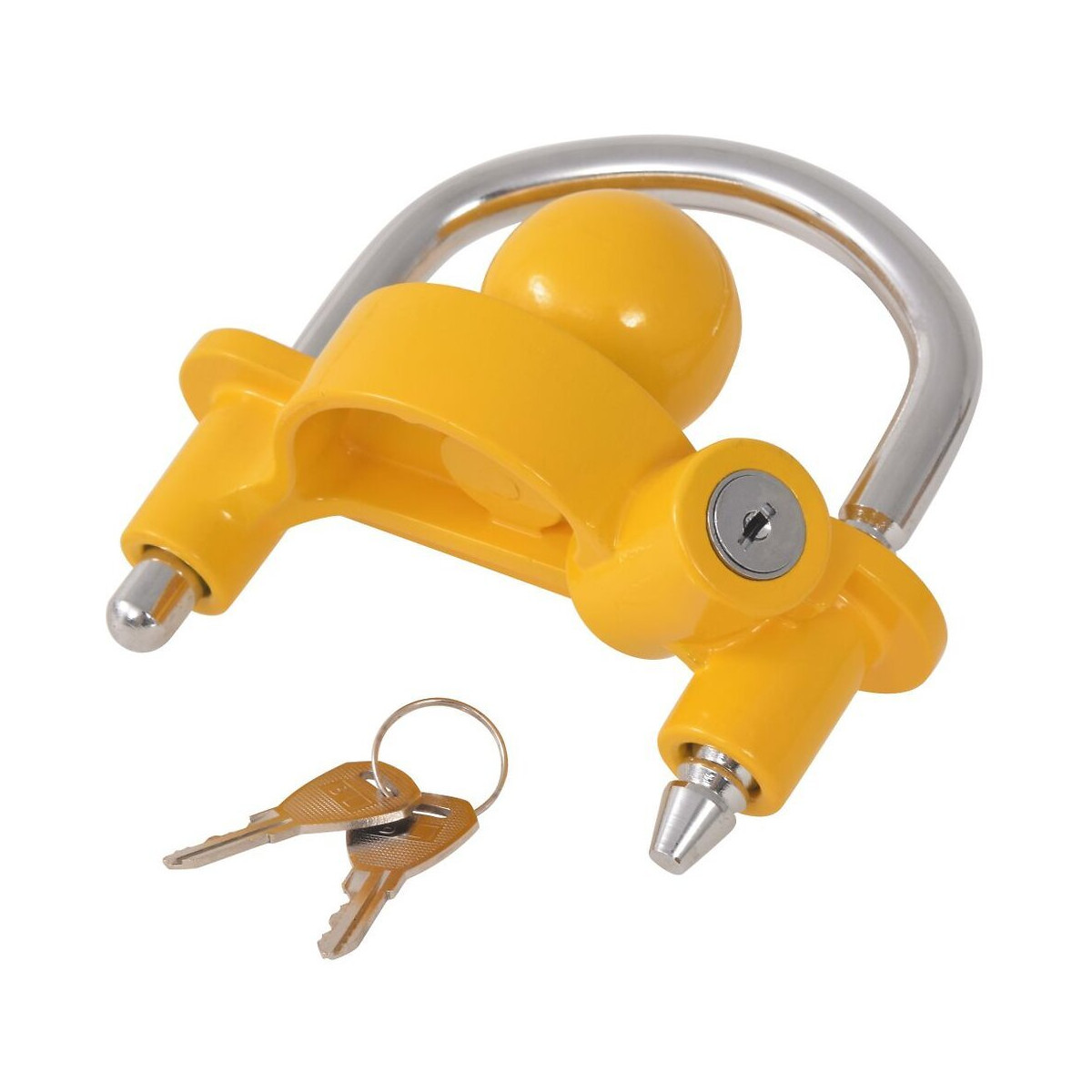 Ce verrou de remorque vous aide à protéger la remorque ou la caravane contre le vol grâce à son mécanisme de verrouillage qui résiste au vol. Ce verrou de remorque est composé d'une manille en acier robuste et d'un corps en alliage d'aluminium recouvert d'un revêtement en poudre jaune pour prévenir la rouille et le rendre résistant aux intempéries. C'est assez simple de verrouiller votre remorque. Il suffit de déverrouiller la barre avec la clé et de la tirer vers le haut, afin que la balle soit placée dans l'attelage de la remorque et la verrouiller à nouveau. La livraison comprend un verrou et deux clés. Couleur : Jaune Matériau : acier + alliage d'aluminium avec une finition de poudre jaune Dimensions : 12 x 0,5 x 14 cm (l x P x H) Poids : 0,85 kg Un verrou robuste et deux clés sont inclus Idéal pour protéger votre remorque ou votre caravane du vol