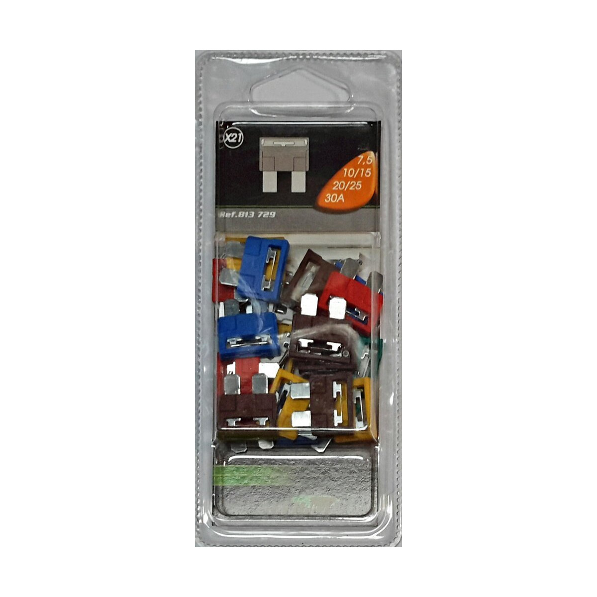 Assortiment 21 fusibles enfichables : 5x7.5A ; 4x10A ; 4x15A ; 4x20A ; 2x25A ; 2x30A.
