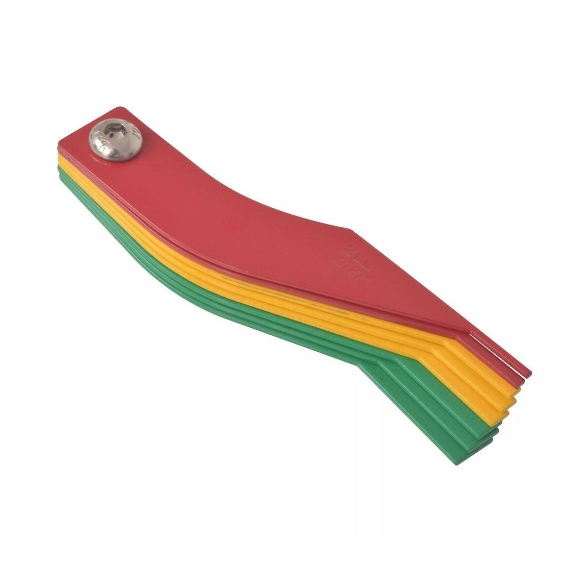 Grâce à notre jeu de jauge d'épaisseur de garnitures de frein 8-en-1, vous pouvez déterminer rapidement et précisément l'épaisseur des plaquettes de frein de vos véhicules, afin de décider s'il est nécessaire de les remplacer. Les jauges des plaquettes de frein sont fabriquées en acier au carbone de haute qualité. Les 8 jauges sont combinées dans une configuration multi-outils facile à utiliser et ont été codées par couleur et estampillées avec des marquages de taille standard pour une identification facile. Cet ensemble de jauges d'épaisseur de garnitures de frein pliant a une conception compacte et est pratique à emporter. Couleur : rouge, jaune et vert Matériau : Acier au carbone Codage par couleur Avec des marquages de taille standard Largeur des pointes : Jauges rouges : 2, 3 mm Jauges jaunes : 4, 5, 6 mm Jauges vertes : 8, 10, 12 mm