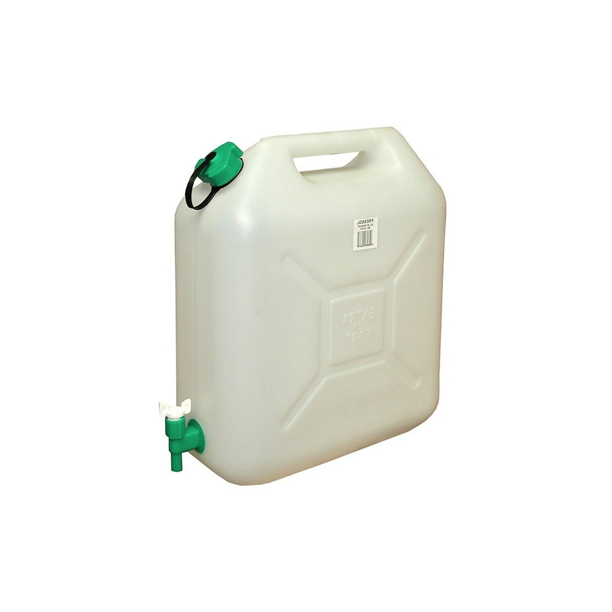 Avec bouchon à vis et robinet inférieur. Couleur : blanc. Volume : 10 L.