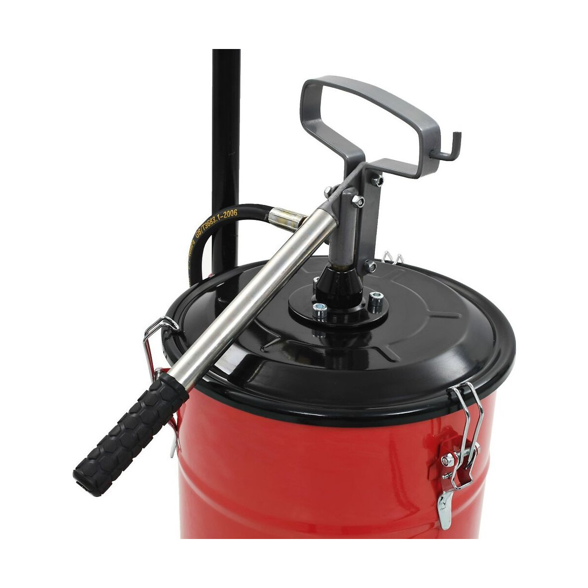 Cette pompe à graisse manuelle est un équipement professionnel indispensable pour la lubrification. Elle peut être largement appliquée dans divers domaines tels que l'industrie automobile, la construction navale, la construction mécanique, l'industrie chimique, etc. La pompe à graisse est très sûre et fiable et dispose d'une pression de service élevée, d'un fonctionnement simple et d'un rendement élevé. Elle est un outil indispensable pour la lubrification dans les ateliers, les garages ou les usines. Équipée de deux poignées de transport et de deux roues, cette pompe à graisse manuelle est facile à déplacer dans l'atelier ou le garage. Couleur : rouge Matériau : métal Dimensions : 34 x 24 x 67 cm (L x l x H) Capacité du tonneau : 12 L Sortie : 5 g par pression Longueur du tuyau : 2,4 m Pression de fonctionnement maximale : 250 bars Avec 2 poignées de transport et 2 rouesSpécifications techniques