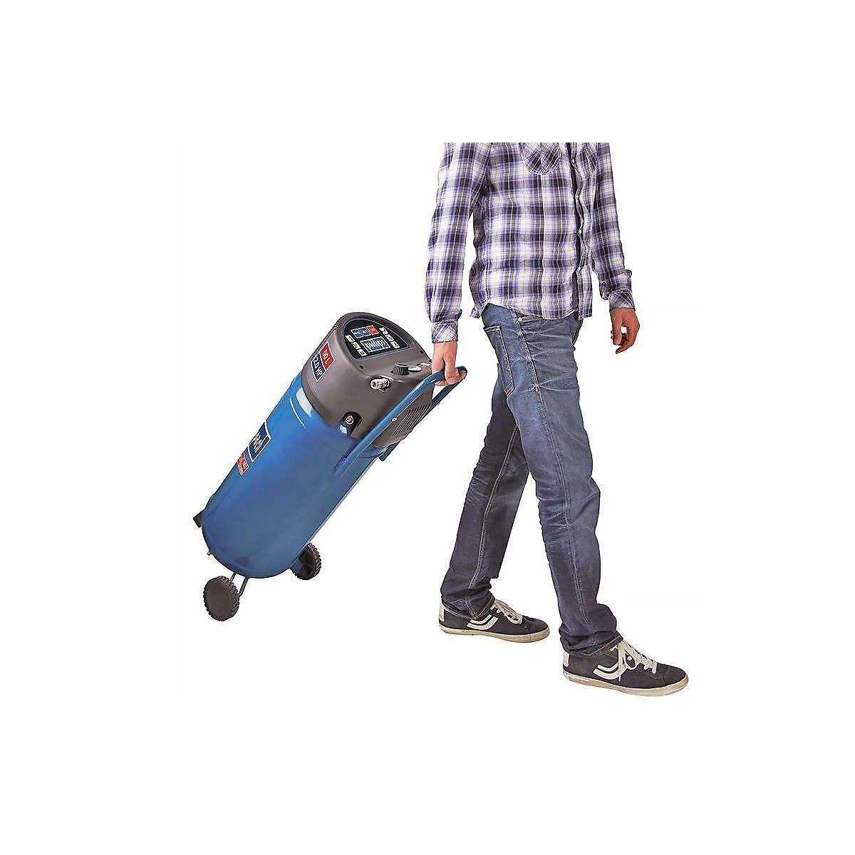 AVANTAGES PRODUITS Ce compresseur vertical Scheppach de 50 L vous permettra de procéder à tous les travaux de gonflage, d'agrafage etc. Son design haut, étroit et vertical permet de l'utiliser dans un espace réduit. Son faible encombrement permet de le ranger facilement Sa cuve de 50 litres alimente sans peine les outils pneumatiques en continu tels que les pistolets de peinture, les pistolets de gonflage et beaucoup d'autres accessoires Sans huile et conçu pour durer, il ne nécessite aucun entretien Il est livré avec un manomètre de réglage optimal de la pression et 2 raccords rapides pour un échange des accessoires sans perte de temps Pression maxi : 10 bar Livré avec deux roues et une poignée pour faciliter son déplacement Raccord en 8 mm CARACTERISTIQUES TECHNIQUES Déplacement d'air 145 l/min Nombre de filtres à air 1 Flux d'air à 1 bar 130 l/min Flux d'air à 10 bar 40 l/min Flux d'air à 2 bar 115 l/min Flux d'air à 3 bar 100 l/min Flux d'air à 4 bar 90 l/min Flux d'air à 5 bar 82 l/min Flux d'air à 6 bar 75 l/min Flux d'air à 7 bar 65 l/min Flux d'air à 8 bar 55 l/min Flux d'air à 9 bar 50 l/min Admission d'air 220 l/min Fréquence 50 Hz Hauteur de la machine 980 mm Longueur de la machine 355 mm Largeur de la machine 345 mm Poids brute 25,5 kg Poids net 22,5 kg Pression maximale de travail 10 Bar Nombre de cylindres 1 Puissance absorbée P1 1500 W Capacité du réservoir 50 l Tension 230 V Diamètre des roues 118 mm GARANTIE 5 + 5 ANS POUR LES PARTICULIERS Extension de 5 ans de garantie offerte sur inscription gratuite ! Offre valable sur tous les produits de marque SCHEPPACH Après inscription de votre achat sur www.garantie.scheppach.com Vous souhaitez connaître les conditions et modalités de la garantie, plusieurs solutions s'offrent à vous : • Consultez : www.garantie.scheppach.com • Scannez le QR code de l'étiquette • Contactez-nous par email sur garantie. france@scheppach.com • Ecrivez à : Service consommateur France Günzburger Str. 69 89335 Ichenhausen – Allemagne • Contactez votre revendeur L'inscription doit s'effectuer dans les 30 jours suivant la date d'achat. Garantie valable uniquement auprès des particuliers. Preuve d'achat à conserver pour faire valoir la garantie.