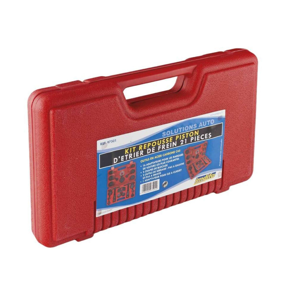 Informations détaillées du produit: Produit: Repousse piston d'étrier de frein Composition du coffret: 1x broche avec filetage à droite, 1x broche avec filetage à gauche, 2x plaques de retenue, 17x adaptateurs pour les marques de voitures Contenant: 1 boîte en plastique robuste Dimensions coffret: 32 x 5,5 x 21 cm Utilisation: Coffret pour le démontage des plaquettes de disque de votre automobile Marque: Imdifa