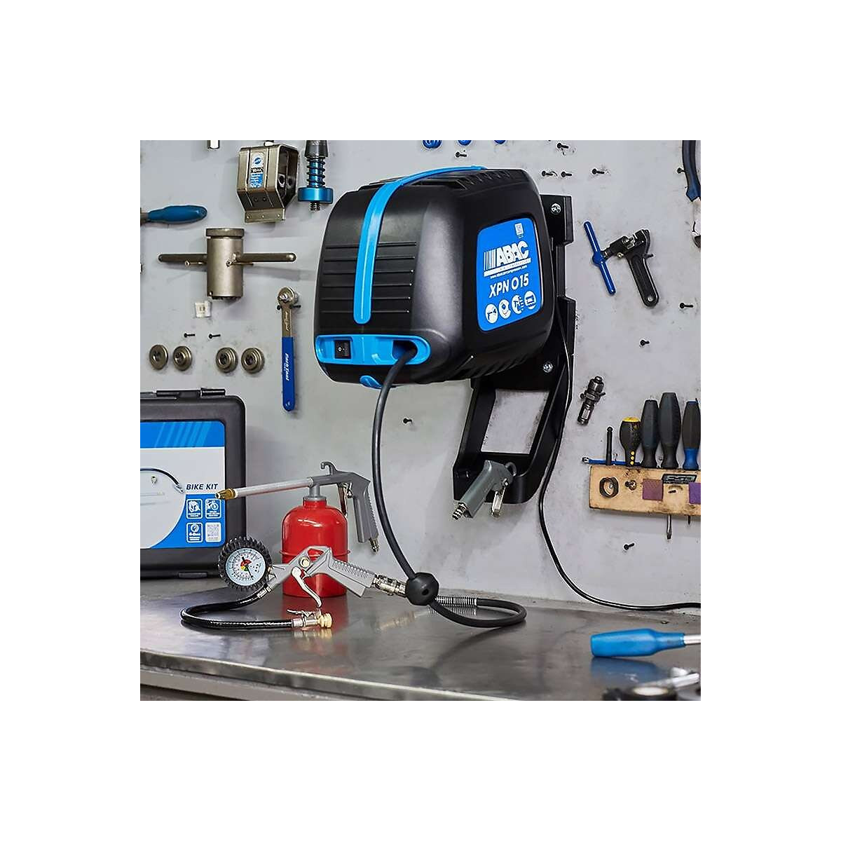 Avantages produit Compresseur à piston et enrouleur à fixation murale ABAC XPN O15 Léger, compact et sans huile, il trouve sa place dans n'importe quel garage ou atelier, de l'entretien de vélo au gonflage VL. Grâce à sa fixation murale pivotante ainsi qu'à un tuyau de 10m intégré et rétractable, il est d'une simplicité d'utilisation hors du commun. Une innovation majeure et le compagnon idéal pour vos besoins quotidiens en air comprimé. Caractéristiques produit Compresseur à piston et enrouleur à fixation murale ABAC XPN O15 Débit d'air aspiré (l/min) : 160 l/min Débit d'air (m³/h) : 10 m³/h Catégorie de produit : Compresseur à piston Chevaux (cv) : 1,50 hp Puissance (kW) : 1,10 kW Capacité de réservoir (litres) : Aucune Demarrage : Démarrage direct Tours par minute (rpm) : 2 450 tr/min Type : Coaxial Poids (kg) : 8,50 Largeur (mm) : 278 mm Mobilité : Portatif Profondeur (mm) : 378 mm Hauteur (mm) : 442 mm Tension (V) : 230 Fréquence (Hz) : 50 Phase : Mono Pression maximale (bar) : 8 Niveau de bruit LpA 4 m (dB(A)) : 68 dB(A) Niveau de bruit LwA (dB(A)) : 90 dB(A)