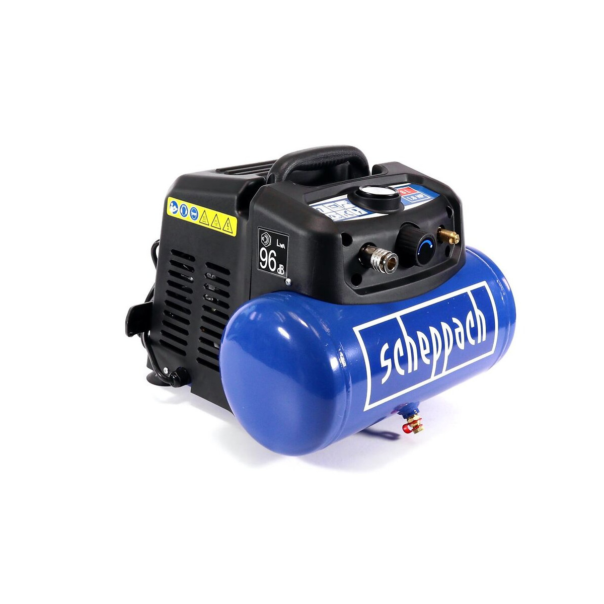 AVANTAGES PRODUIT Compresseur SCHEPPACH HC06 220-240V 50Hz 1200W 6L Le compresseur SCHEPPACH HC06, un auxiliaire puissant mais néanmoins très facile à déplacer et ne nécessitant pas d'huile. Grâce à ses nombreux accessoires, il va vous permettre de réaliser tous les travaux nécessitant de l'air comprimé. Sa cuve de 6 L et sa puissance de 1200W lui permettent de venir à bout de tâches exigeantes. Pesant seulement 9,8 kg et équipé d'une poignée de transport ergonomique il est transportable à tous les endroits où il est nécessaire. Compresseur ne nécessitant pas de lubrification, sans entretien et d'une grande longévité Admission d‘air 192 L/min Moteur puissant de 1200 W Volume de la cuve : 6 L Pression max.au travail : 8 Bar Livré avec de nombreux accessoires Facile à transporter grâce à sa poignée ergonomique Très stable grâce à ses pieds en caoutchouc CARACTERISTIQUES TECHNIQUES Compresseur SCHEPPACH HC06 220-240V 50Hz 1200W 6L Nombre de filtres à air 1 Flux d'air à 1 bar 90 l/min Flux d'air à 4 bar 55 l/min Flux d'air à 7 bar 40 l/min Admission d'air 192 l/min Fréquence 50 Hz Hauteur de la machine 300 mm Longueur de la machine 350 mm Largeur de la machine 355 mm Masse brute 11,3 kg Masse nette 9,76 kg Pression maximale de travail 8 Bar Nombre de cylindres 1 Puissance absorbée P 11200W Manomètre de pression 1 Capacité du réservoir 6l Tension 220-240 V GARANTIE 5 + 5 ANS POUR LES PARTICULIERS Extension de 5 ans de garantie offerte sur inscription gratuite ! Offre valable sur tous les produits de marque SCHEPPACH Après inscription de votre achat sur www.garantie.scheppach.com Vous souhaitez connaître les conditions et modalités de la garantie, plusieurs solutions s'offrent à vous : • Consultez : www.garantie.scheppach.com • Scannez le QR code de l'étiquette • Contactez-nous par email sur garantie. france@scheppach.com • Ecrivez à : Service consommateur France Günzburger Str. 69 89335 Ichenhausen – Allemagne • Contactez votre revendeur L'inscription doit s'effectuer dans les 30 jours suivant la date d'achat. Garantie valable uniquement auprès des particuliers. Preuve d'achat à conserver pour faire valoir la garantie.