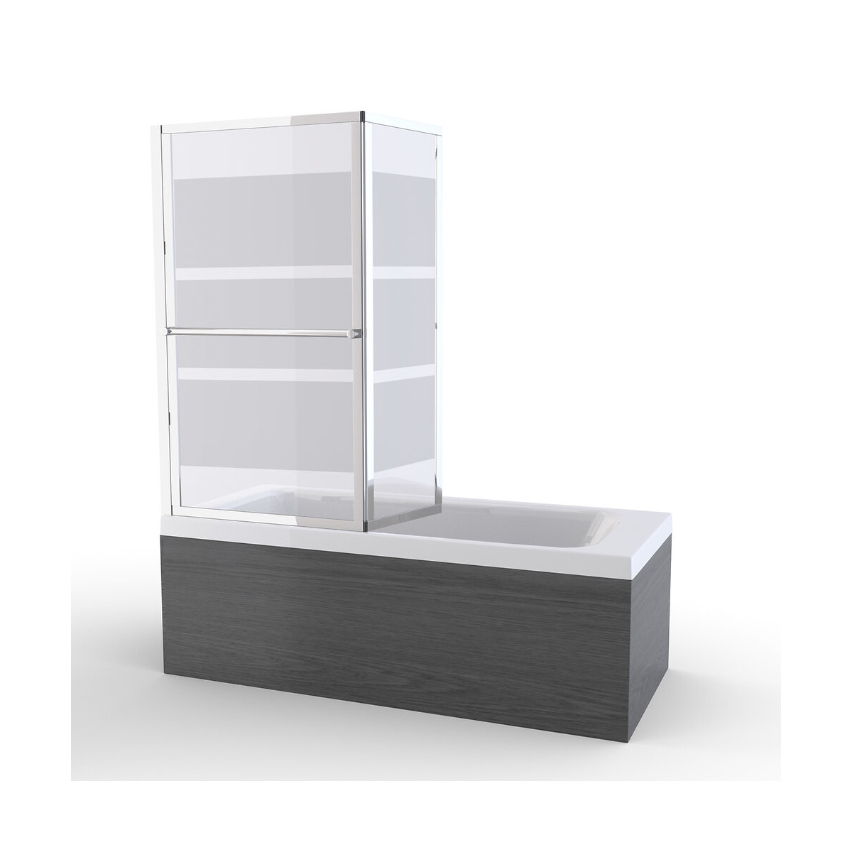 Pare baignoire à 2 volets relevable à 25cm en verre sécurit sérigraphié, porte serviette intégré XL Dimensions : Longueur 138,5 cm Largeur 105,5 cm Hauteur 6 cm Poids : 18 kg