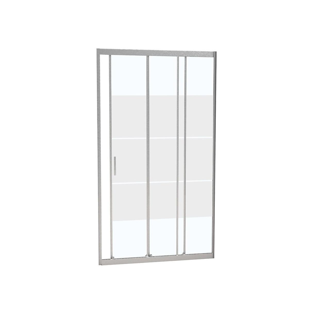 Porte coulissante 3 Volets 90 x 190cm. Caractéristiques: Profilé: aluminium chromé brossé + un profilé cache vis Verre trempé sécurit 6mm avec sérigraphie dépoli Ajustable sur 1.5cm RéversibleSpécifications techniques