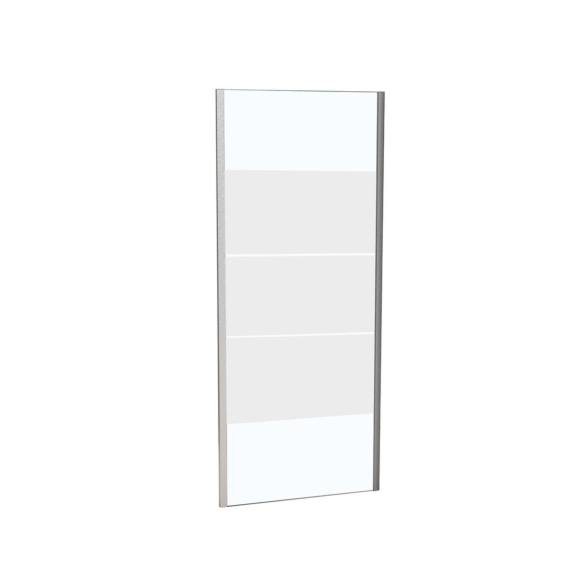Paroi fixe 90 x 200cm. Caractéristiques: Profilé: aluminium chromé brossé Verre trempé sécurit 8mm avec bande dépoli Ajustable 1.5cm Anti calcaire, côté intérieur Reversible
