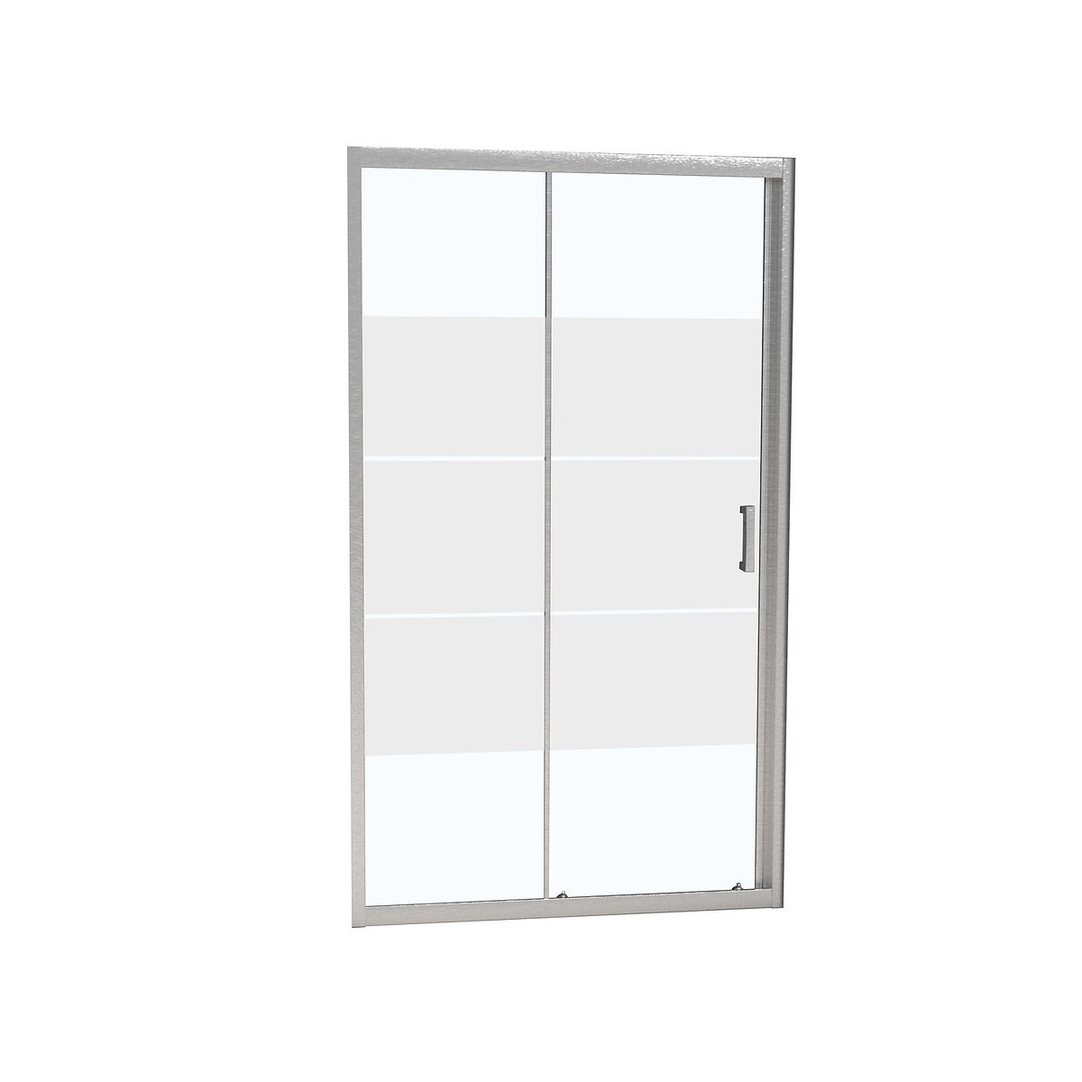 Porte coulissante (1 paroi fixe + 1 porte) 160 x 190cm. Caractéristiques: Profilé: aluminium chromé brossé + un profilé cache vis Verre trempé sécurit 6mm avec bande dépoli Ajustable 1.5cm ReversibleSpécifications techniques