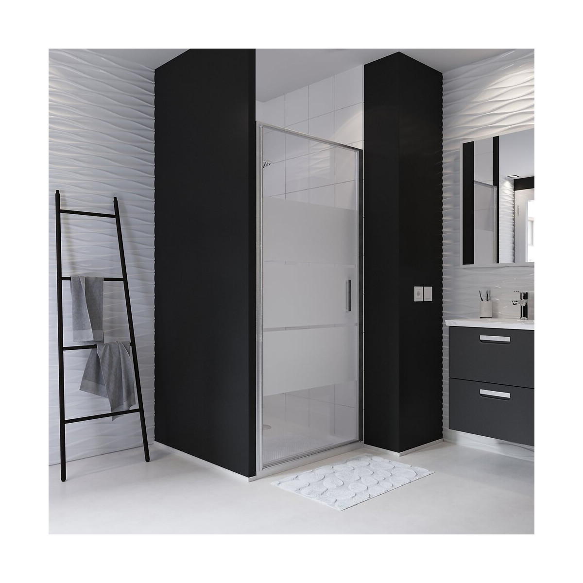 Porte de douche pivotante largeur 80 cm en verre 6 mm dépoli
