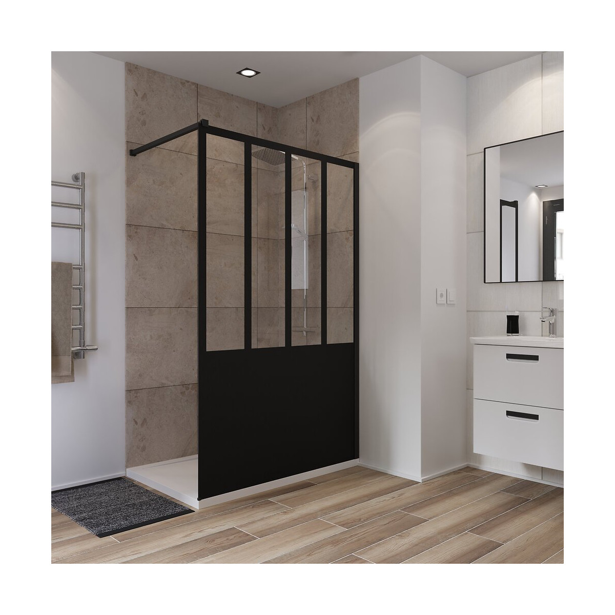 Choisissez cette paroi de douche pour embellir votre salle de bain. Son matériau en aluminium procure une résistance à la fissuration, aux chocs et aux rayures. Son design en noir mate offre une touche élégante à votre salle de bain. vous pouvez la personnaliser selon la configuration de votre pièce. La dimension de cette paroi de douche est de 120 x 190 cm. Léger, ce vitre de douche a un poids total de 37 kg. Cette paroi de douche peut être installée avec plusieurs types de receveurs. Idéale pour une douche à l’italienne, cette paroi de douche dispose d’une barre de fixation plate recoupable et ajustable de 1,5 cm. Esthétique et pratique, cette vitre de douche fixe se présente avec une partie basse pleine. Cette paroi de douche est composée de verre trempé Sécurit, d’une épaisseur optimale de 6mm. Ce verre sérigraphié noir offre un aspect moderne à votre salle de bain.