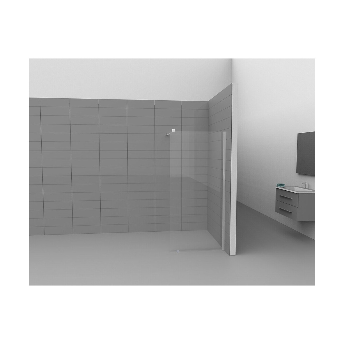 Paroi de douche à l'italienne 90 x 190 cm Profilé: Aluminium chromé brossé. Verre trempé sécurit 6mm TRANSPARENT +barre de fixation plate. Ajustable 1.5cm. Réversible.Spécifications techniques